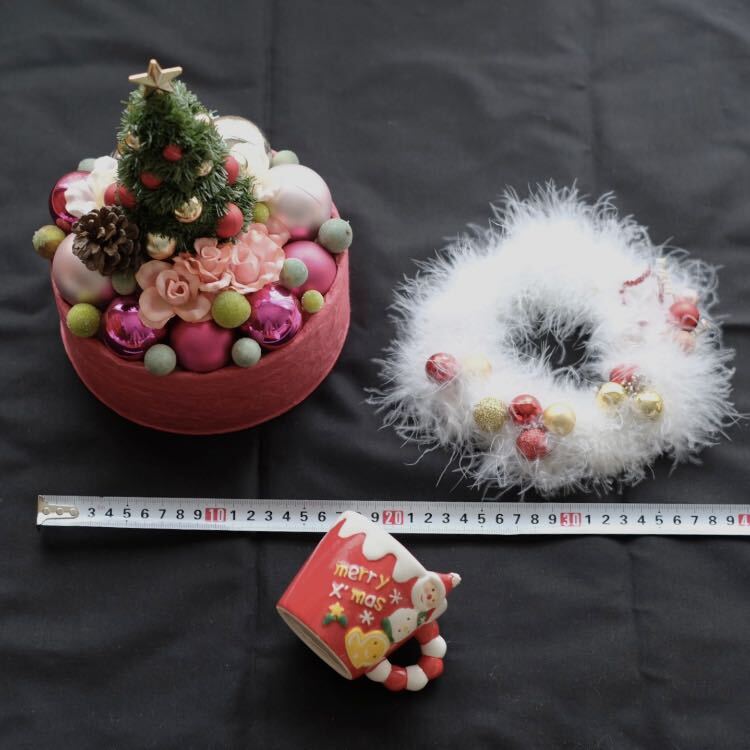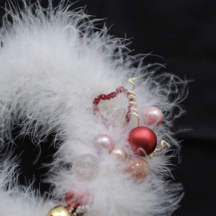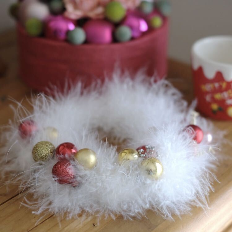☆ふわふわのファーとハート・ボールオーナメントを使用したリース飾り