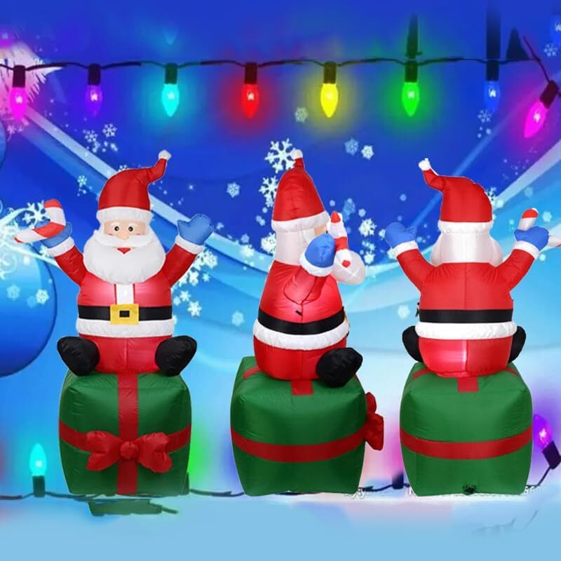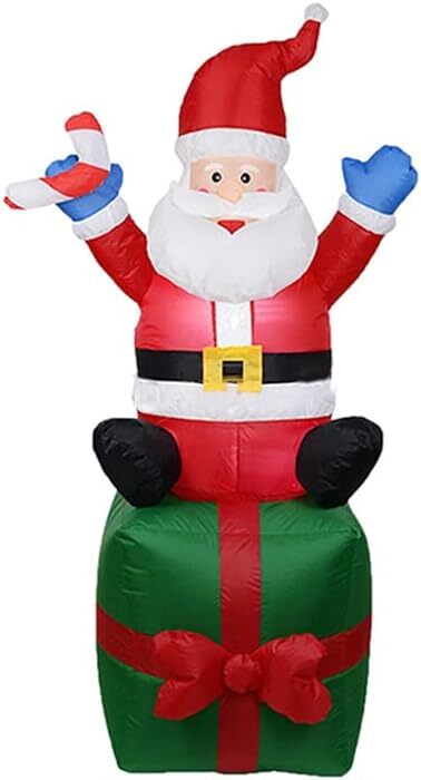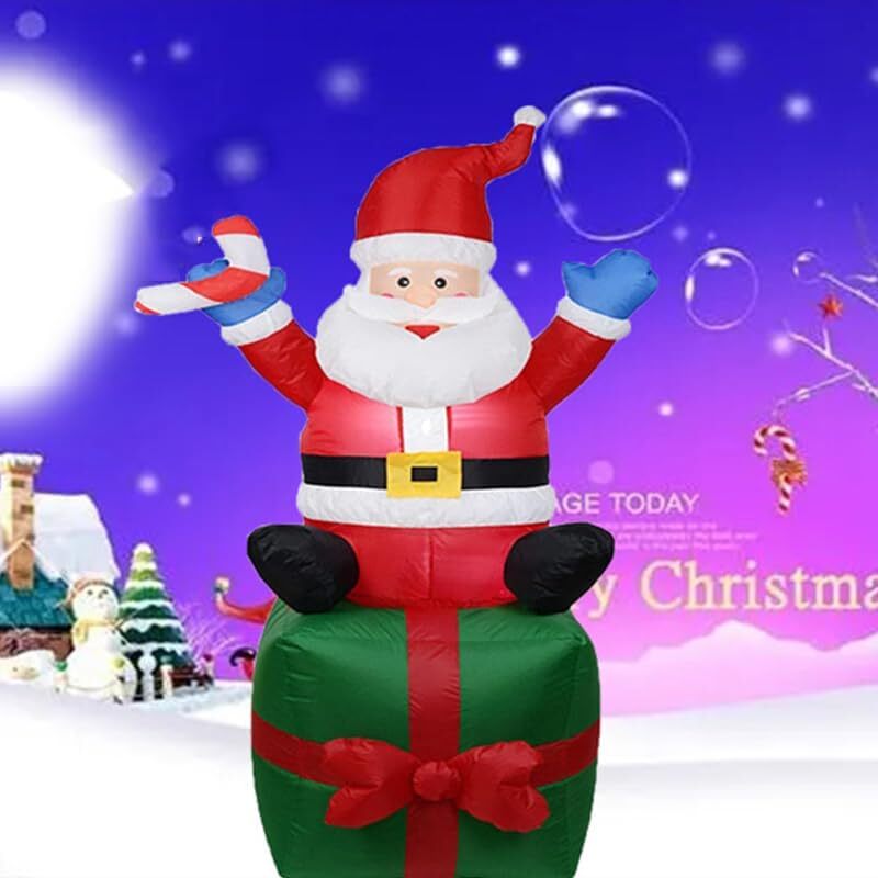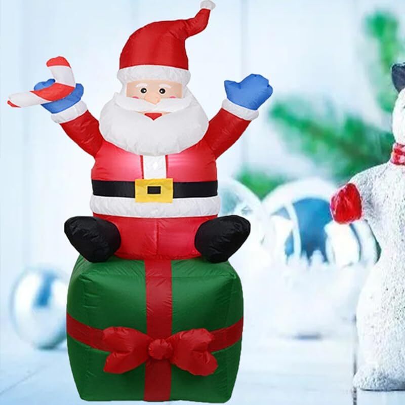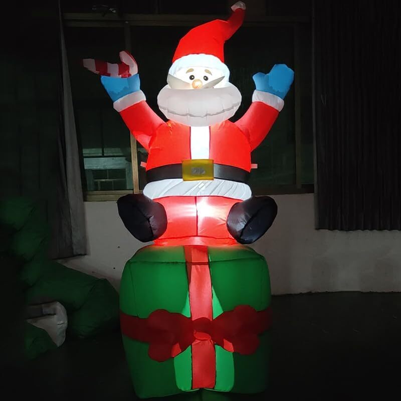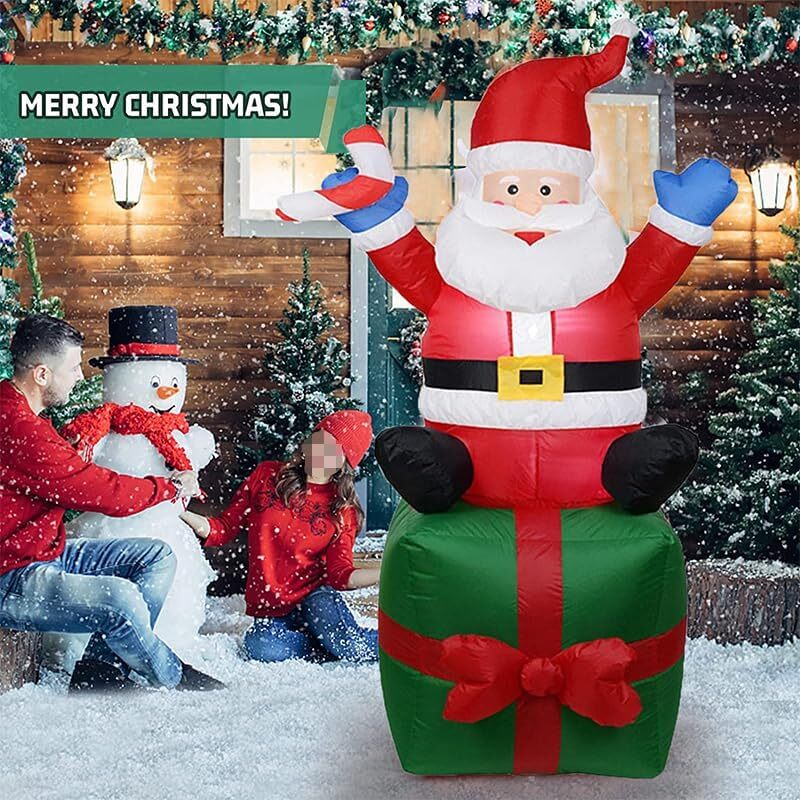1.8 m高さのクリスマスサンタクロースインフレータブル、LEDライト付き、プレゼント型座席、屋外装飾