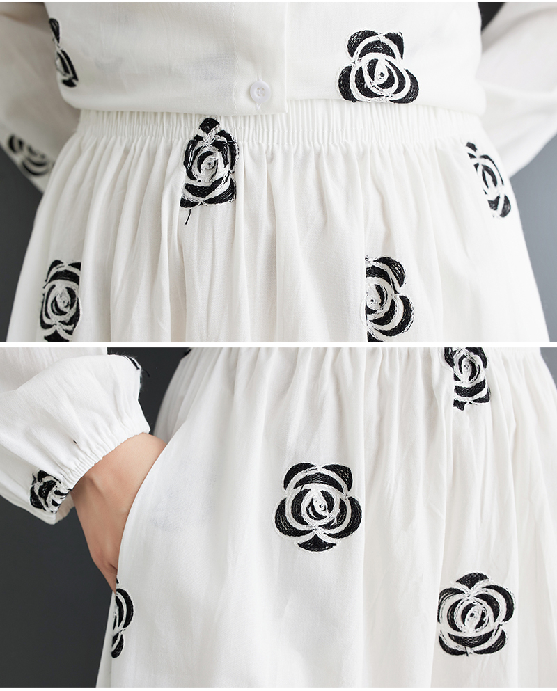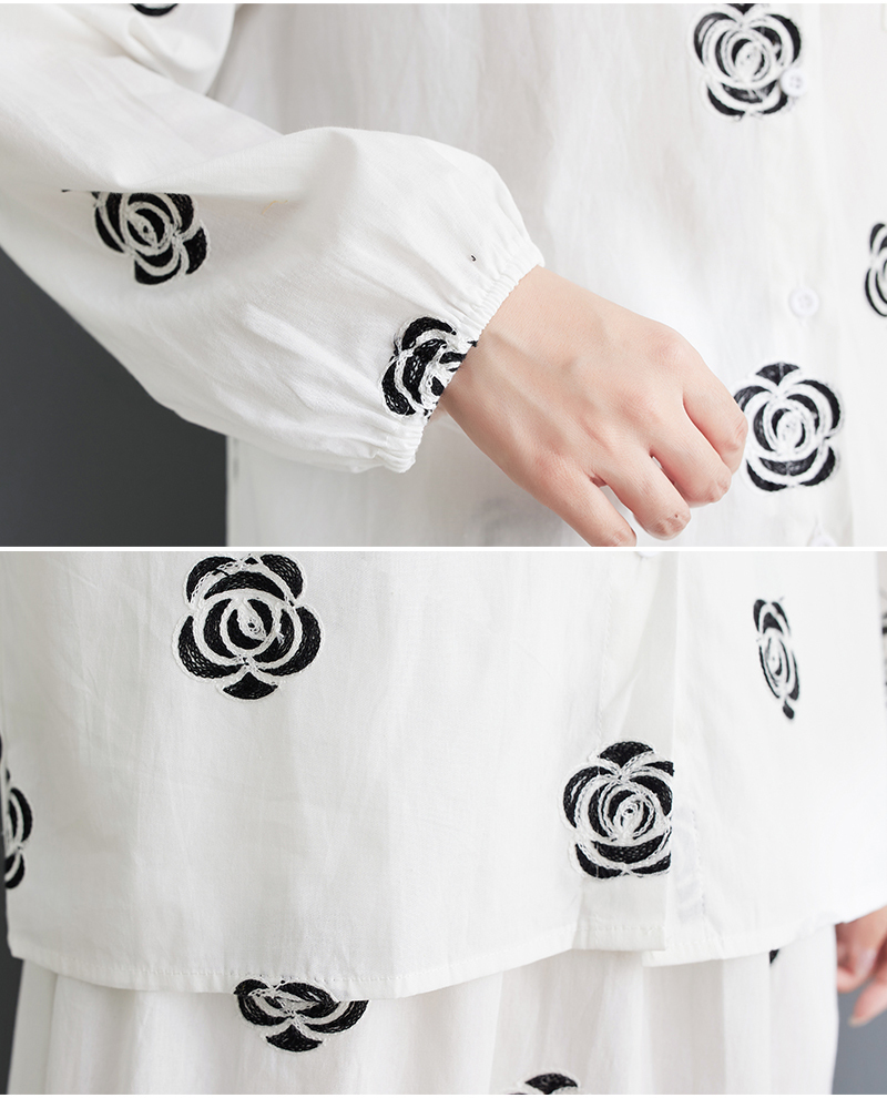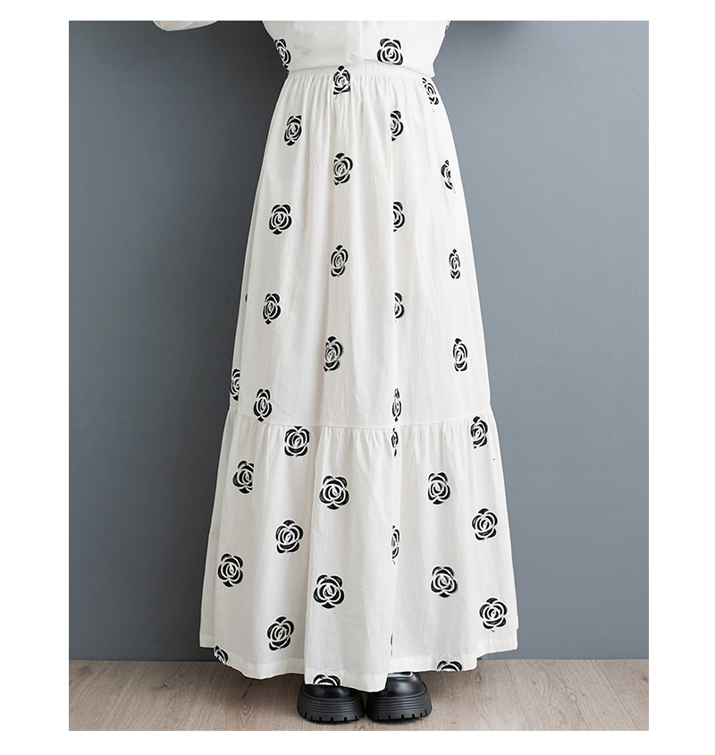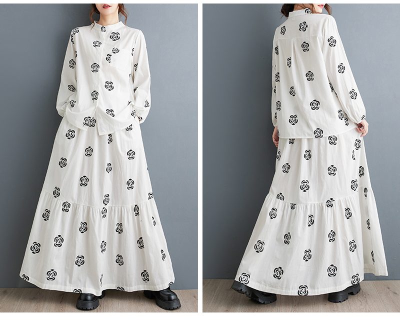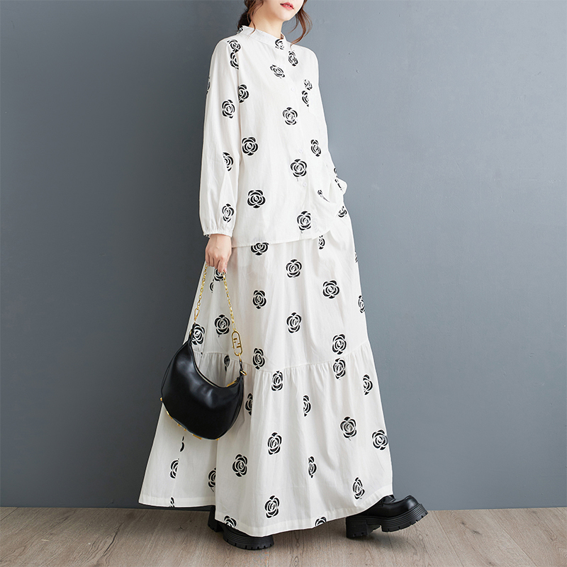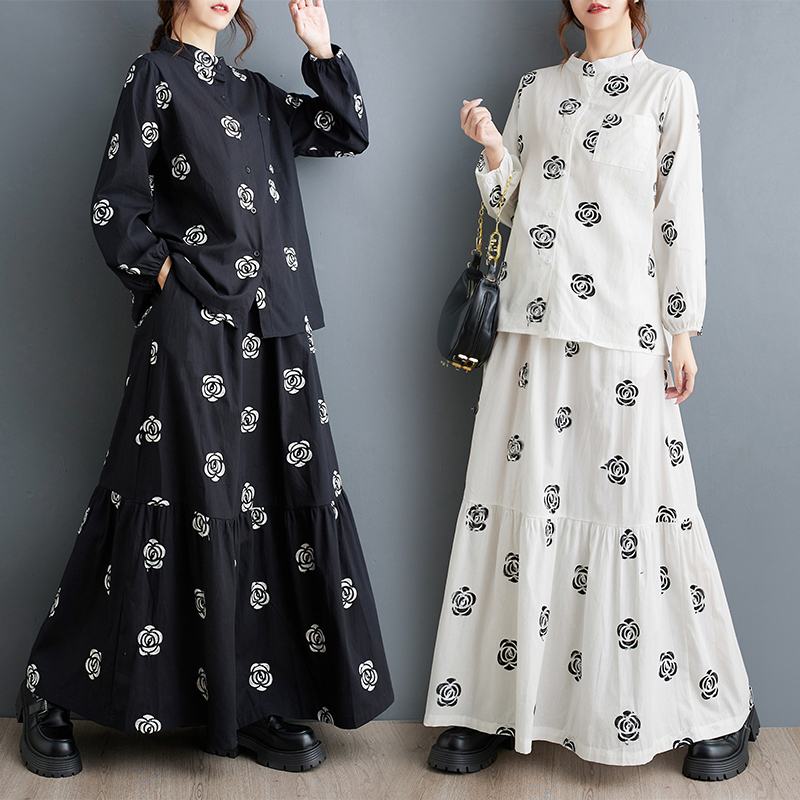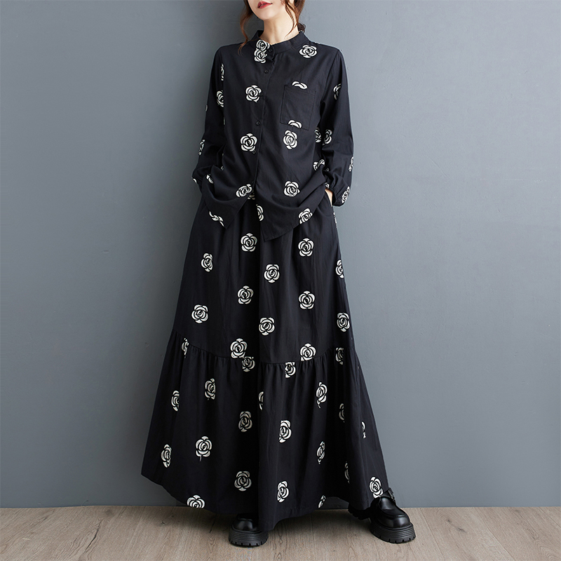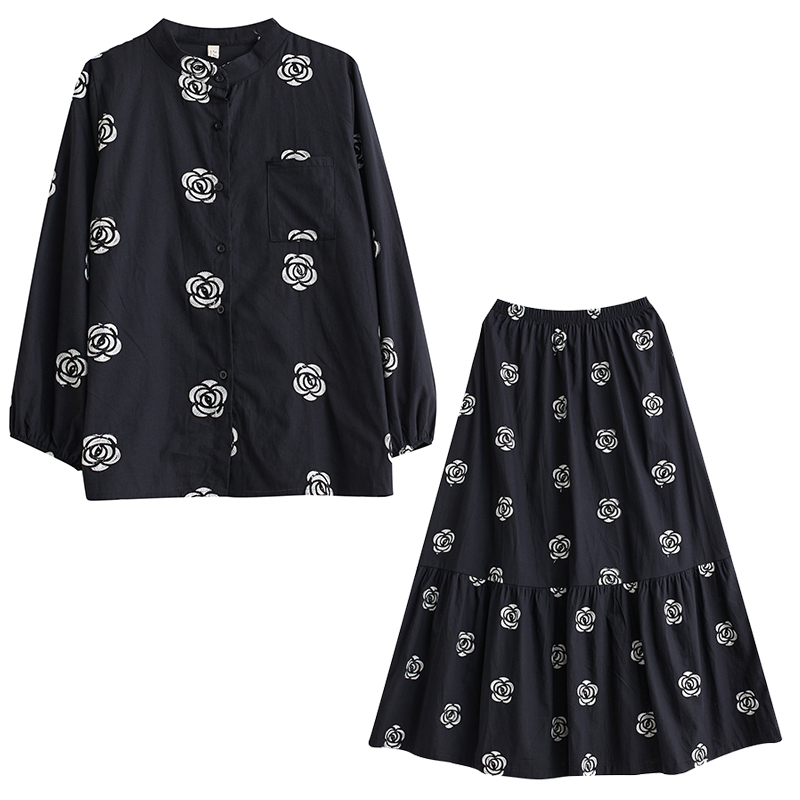 「同梱1万円送料無料」秋新作*カジュアル*ゆったり大きいサイズ*レディース*花柄トップス*+スカート*2点セット 黒
