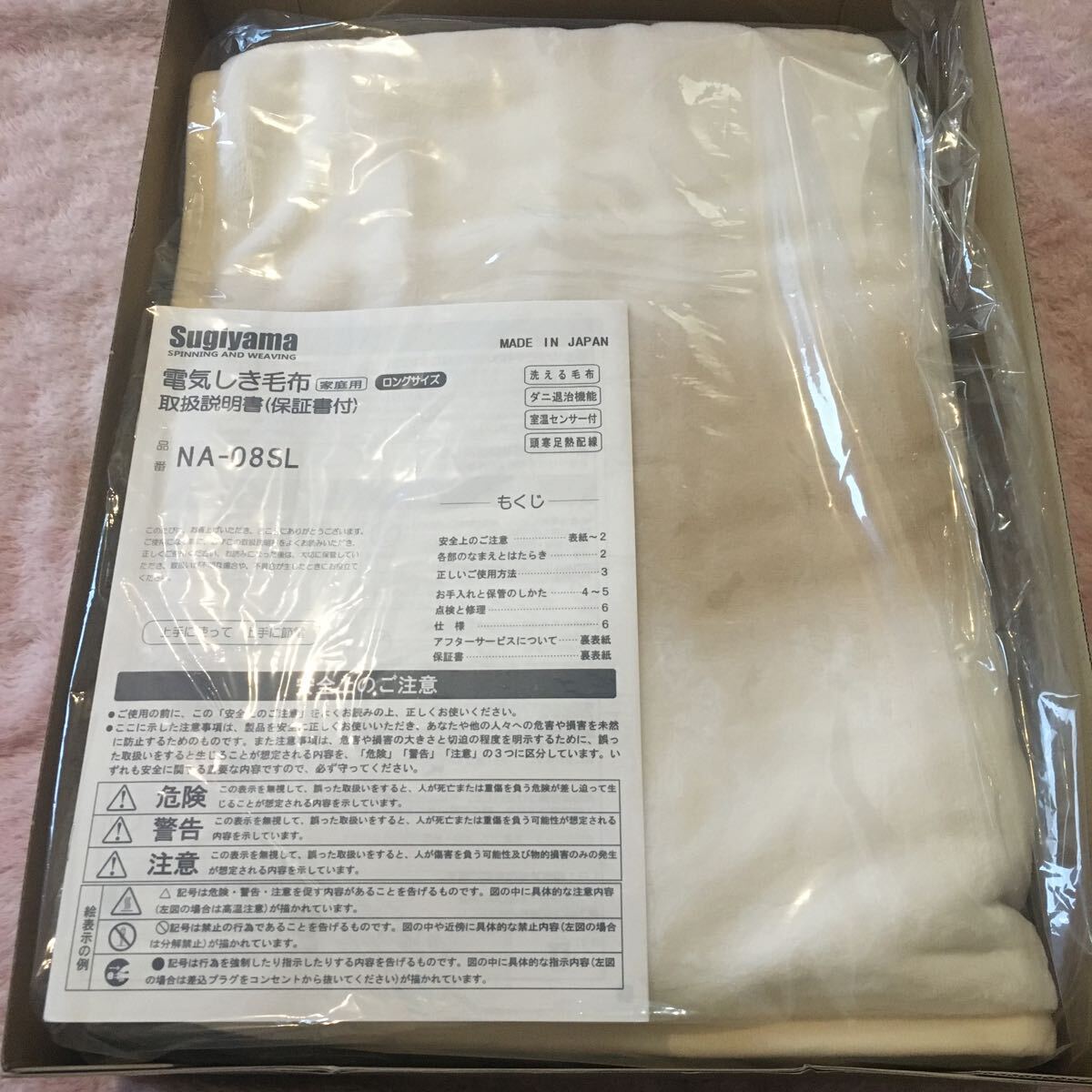 【新品・未開封・送料無料】NA-08SL(BE)ベージュ Sugiyama 電気しき毛布 ロングサイズ 洗える毛布 ダニ退治機能 日本製