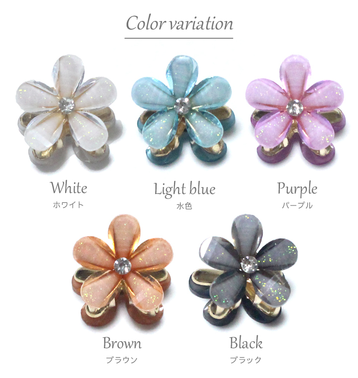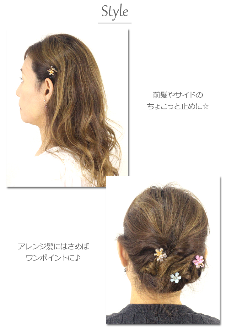 商品説明 | 前髪やサイドのちょこっと留めにおすすめ♪ アクリルのラメ入りお花モチーフミニクリップ。 かさばらないミニサイズは、バッグにしのばせておくのにGOOD!! ちょっとした際に大活躍すること間違いなしです☆ |