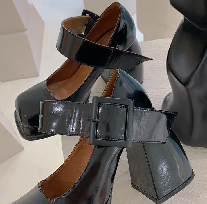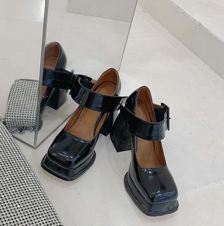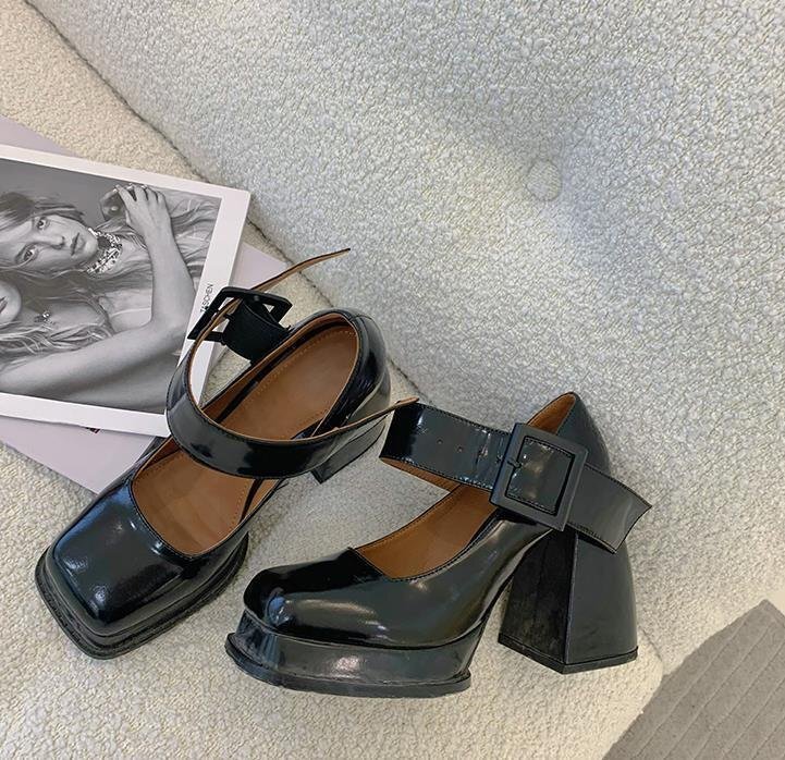 LRM771★レディース  厚底 太ヒール9㎝ ブラック パンプス 婦人靴 身長アップ おしゃれ シンプル 原宿風