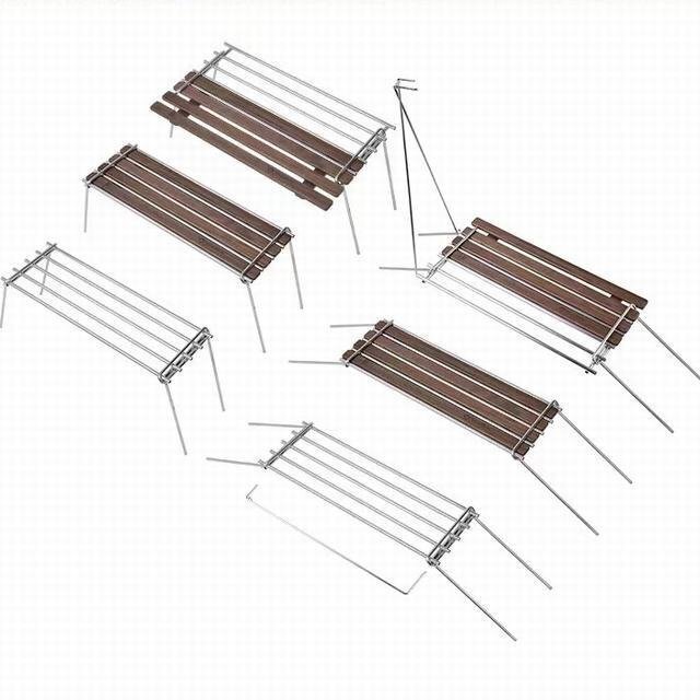 パーツの組み合わせでテーブルのサイズを変えることができます。金属部分には熱いクッカーやアルストなどを置くことができます。