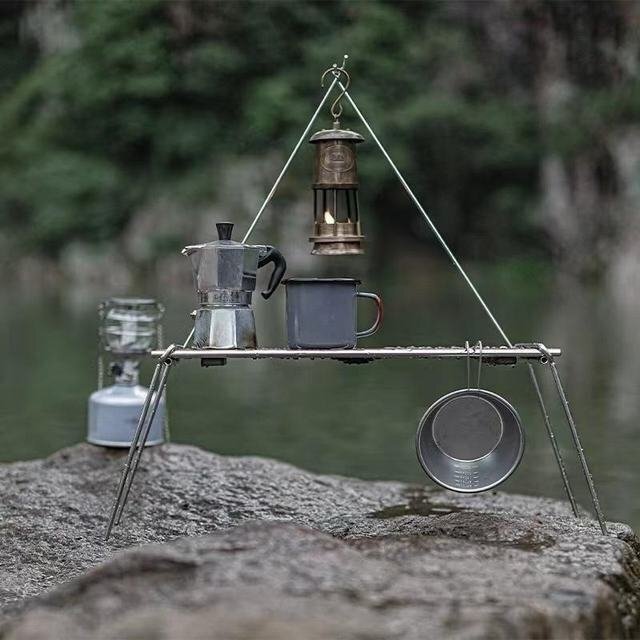 ランタンフックにランタンなどを吊るしたり、サイドにシェラカップを吊るしたり
