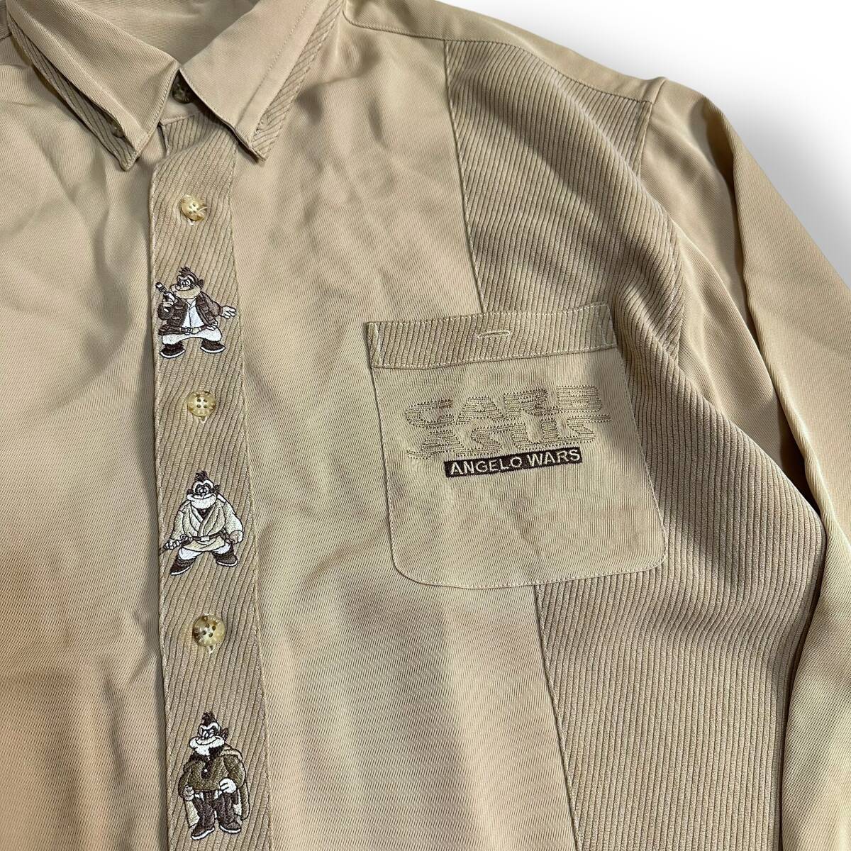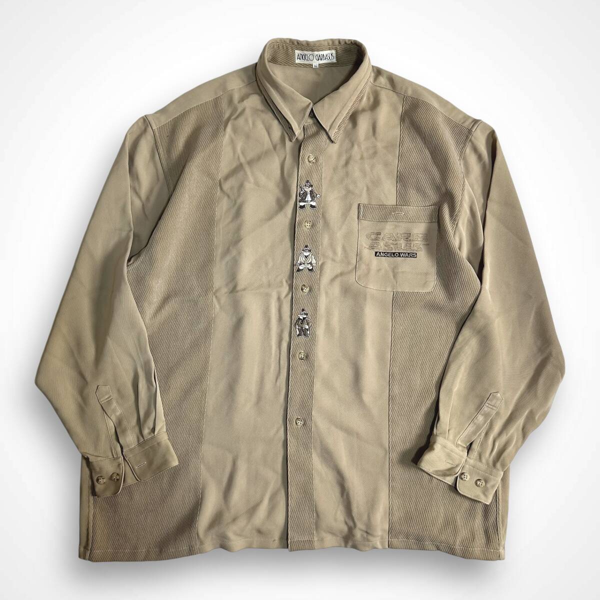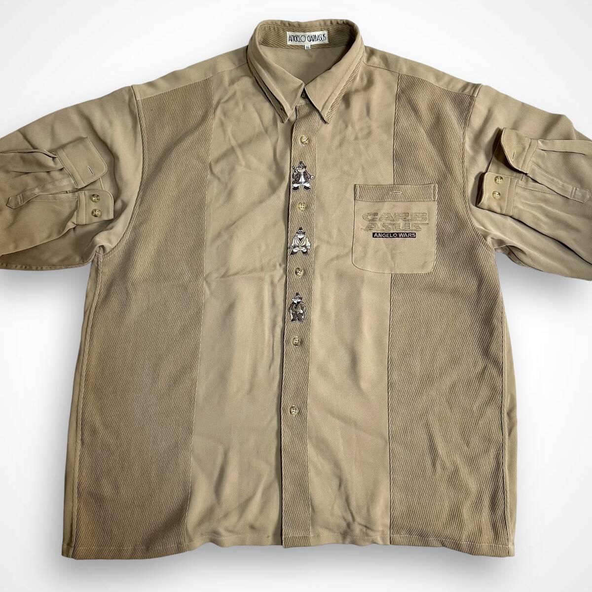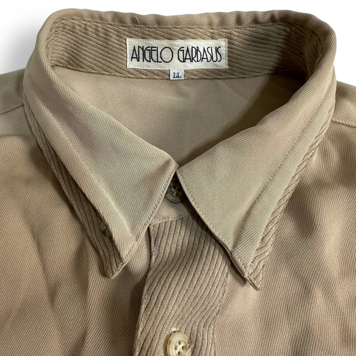 貴重【ANGELO GARBASUS】アンジェロガルバス VINTAGE 90s 刺繍 畝デザイン レトロシャツ オールド 古着 ビンテージシャツ