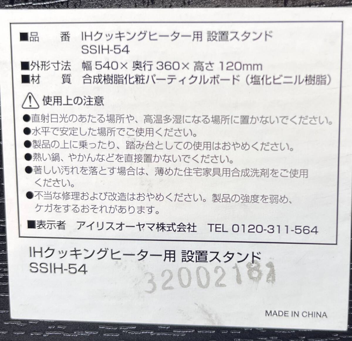 ◎ 中古品 アイリスオーヤマ IHクッキングヒーター用 設置スタンド SSIH-54 発送120サイズ 直接引取OK! キッチン IH