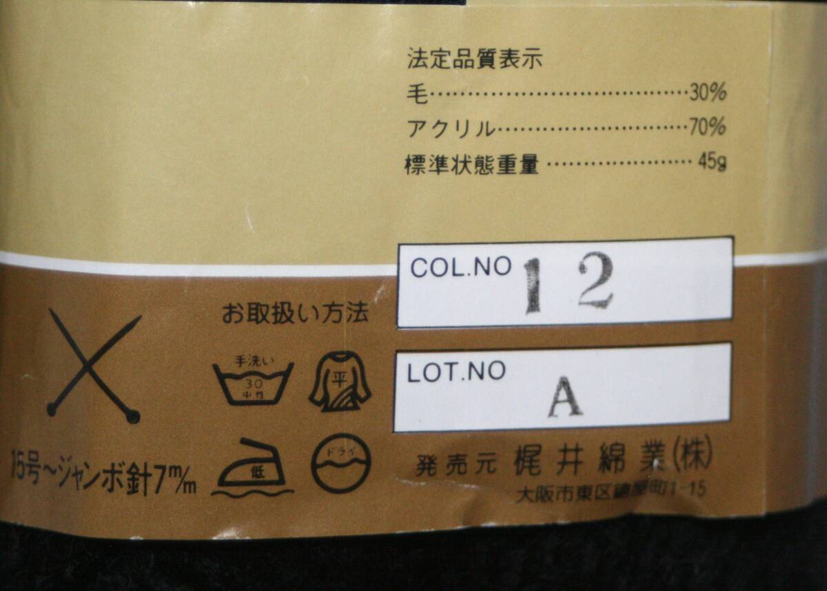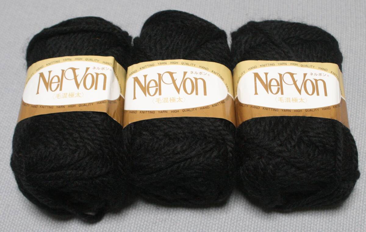 ★毛糸 ネルボン 毛混極太 ブラック 45g 3玉 アクリル70%・毛30% 保管品 現状品 レトロ★