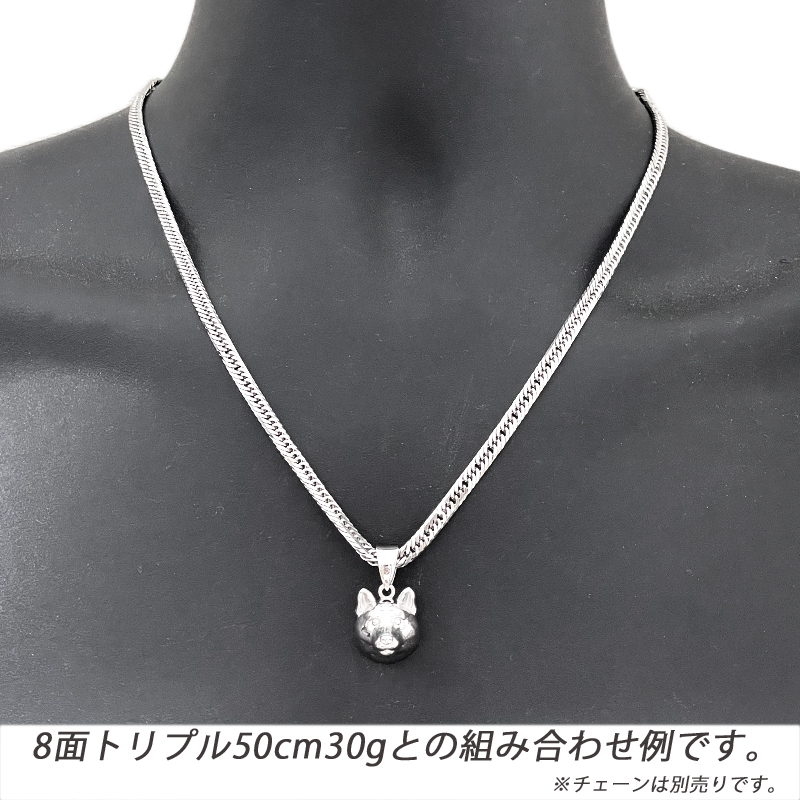 | サイズ | トップ 約 18 × 14.7 mm(バチカン除く) 厚み 約 13 mm(鼻先部分) ※一点一点手作りにて製作しておりますため、サイズ表記より+0.5 ~ -0.5ミリ程度誤差がございます。何卒ご了承くださいませ。 バチカン内径 約 7 × 4 mm 重量 約 14.4 g ※チェーンは、付属しておりません(別売りです) |