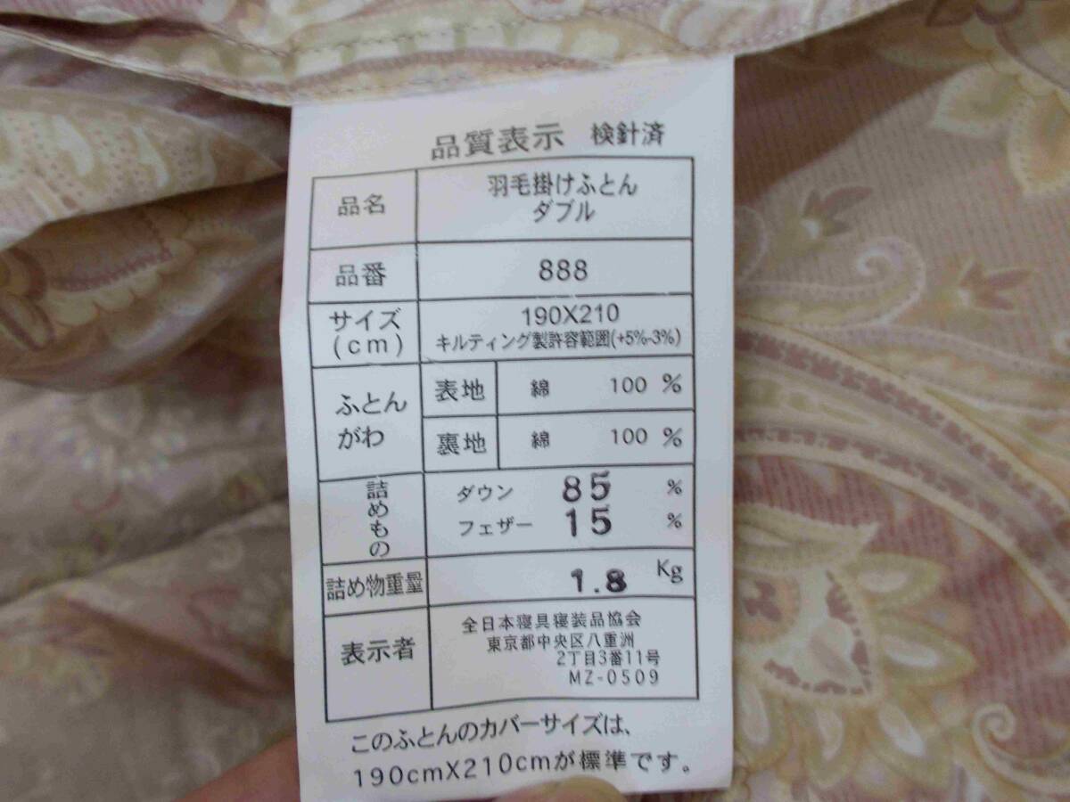 羽毛布団 ダブル ホワイトダウン85% 羽毛大増量1.8kg リサイクルダウン不使用 立体キルト 80サテン綿100% 沖縄、諸島部は不可