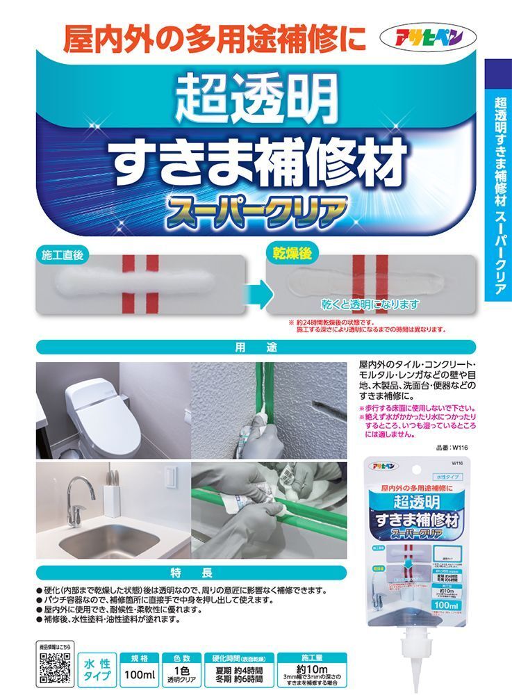 ○屋内外のタイル・コンクリート・モルタル・レンガなどの壁や目地、木製品、洗面台・便器などのすきま補修に。