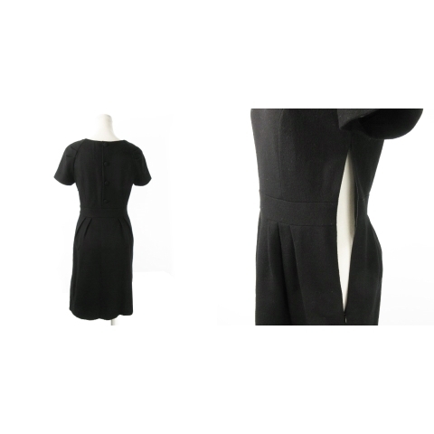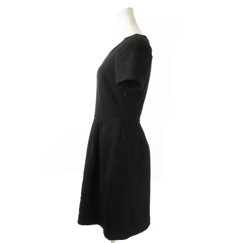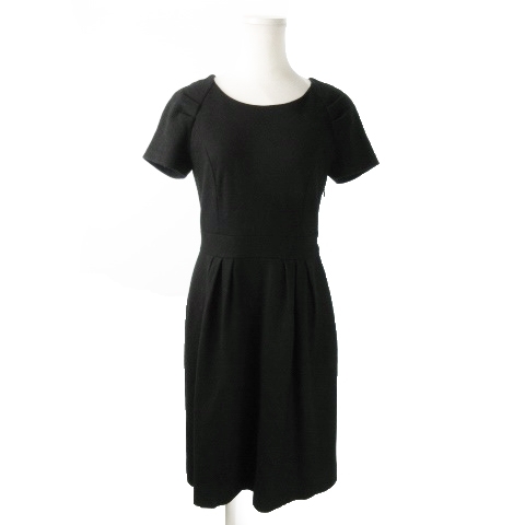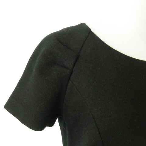 エストネーション ビス ESTNATION bis ワンピース ミニ 半袖 ウール ストレッチ バックボタン タック 36 黒 ブラック /AO3 レディース