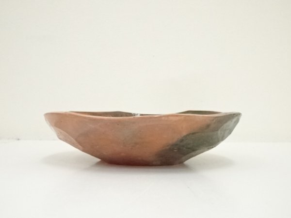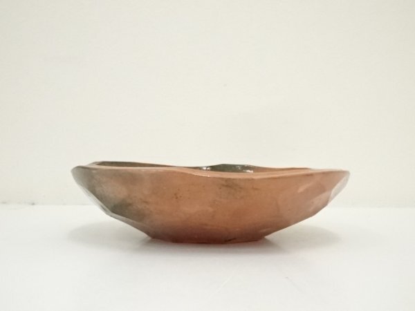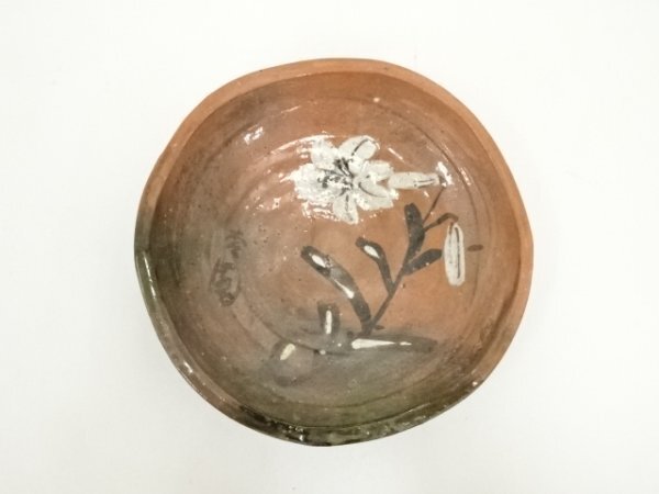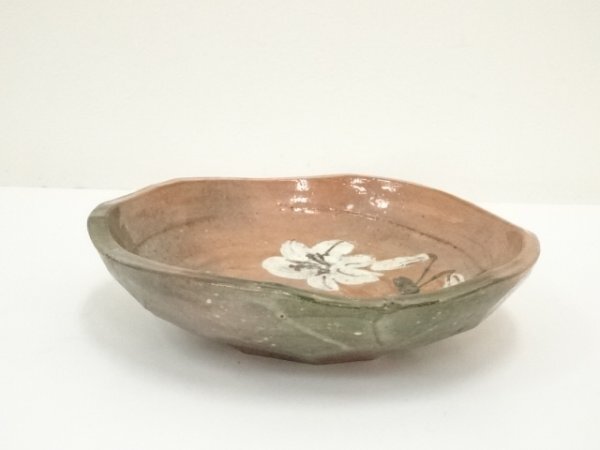 ys7176740; 京焼 中村東洸造 赤楽百合絵鉢(共箱)【道】