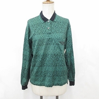 ミスタージュンコ Mr.JUNKO ゴルフ シャツ ポロシャツ 長袖 総柄 ロゴ 綿 緑 黒 グリーン ブラック M レディース