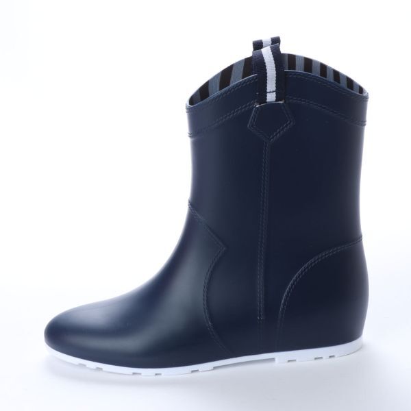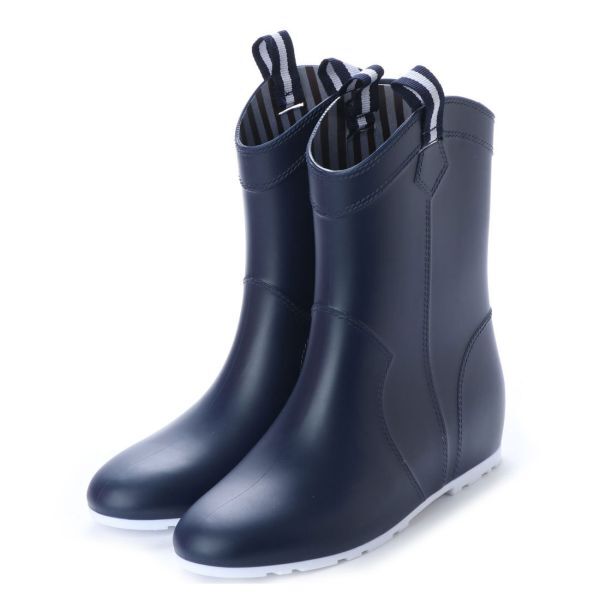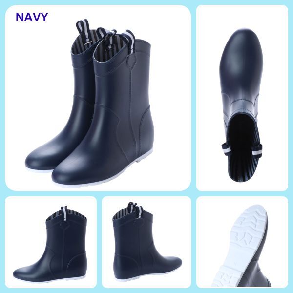 18034 新品 レディース レインブーツ ネイビー M(23.0-23.5cm) ミドル丈 ブーツ 3cmエアー入りインソール シンプル 長靴 雨靴