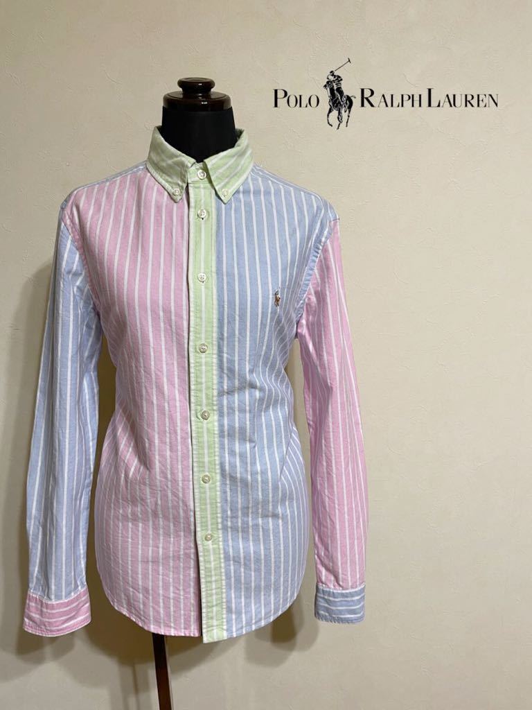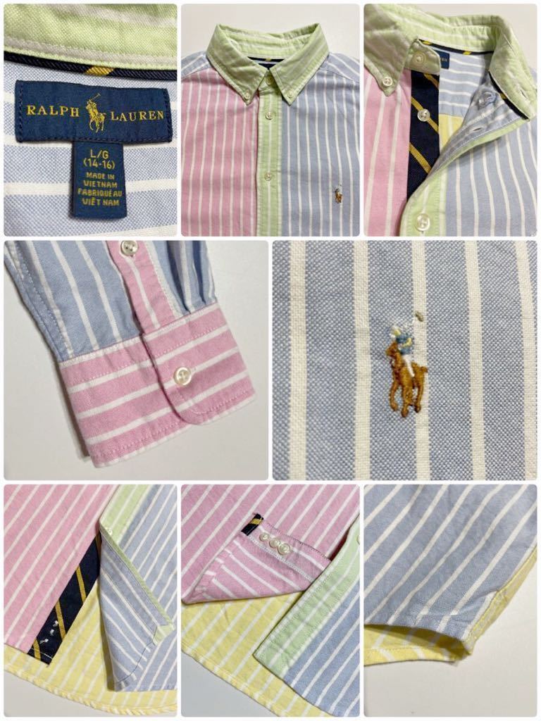 【美品】 Polo Ralph Lauren ポロ ラルフローレン ボタンダウン オックスフォード ストライプ シャツ ジュニアサイズL (14-16) 長袖