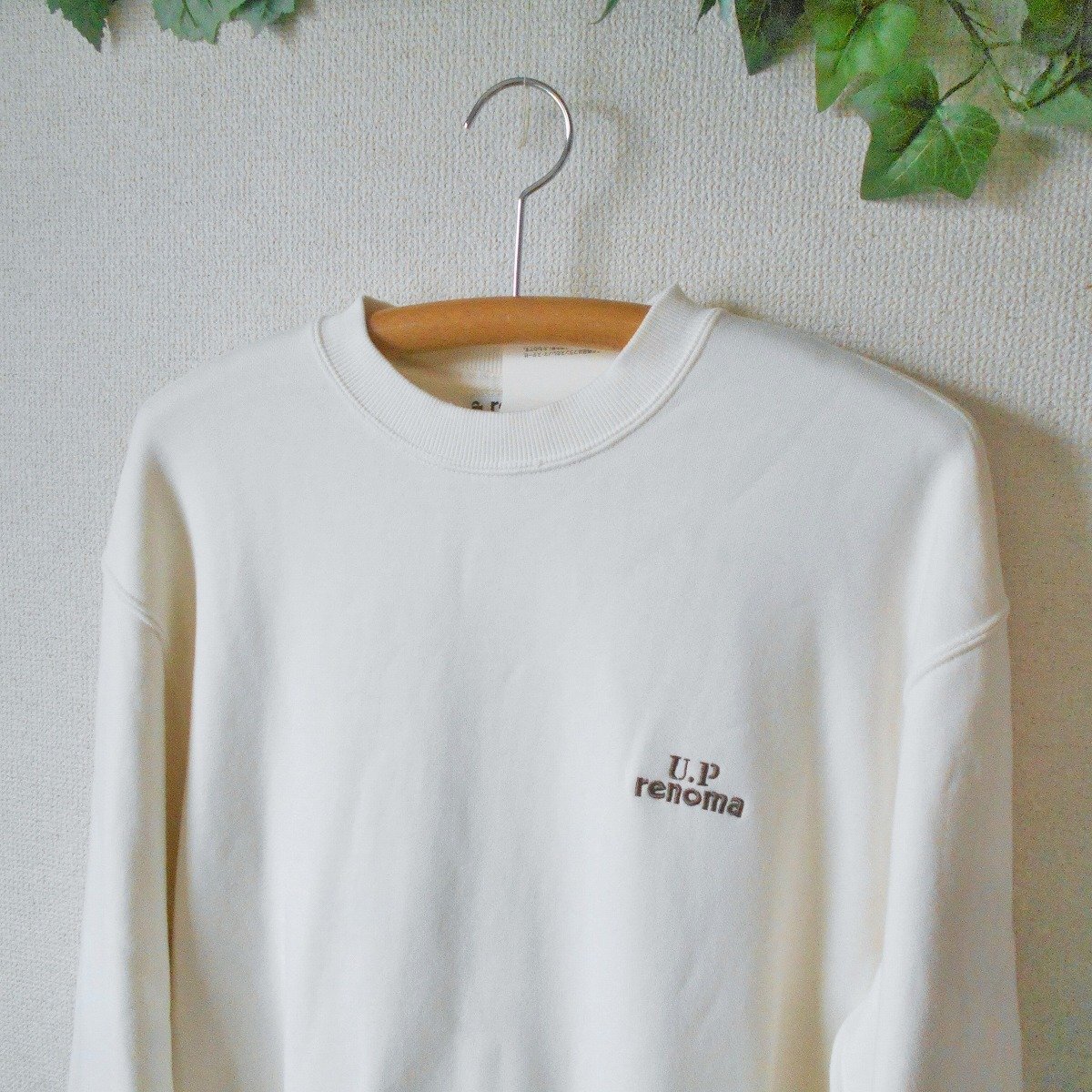 【ポイント】レノマのスウェットトレーナーになります。お色はアイボリー系のベースカラーで秋冬春の3シーズン使えるお品です。
