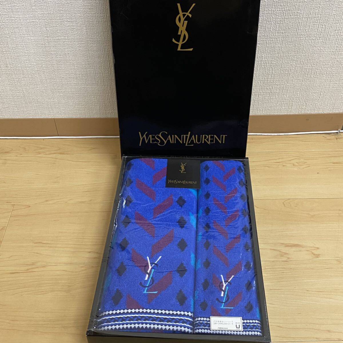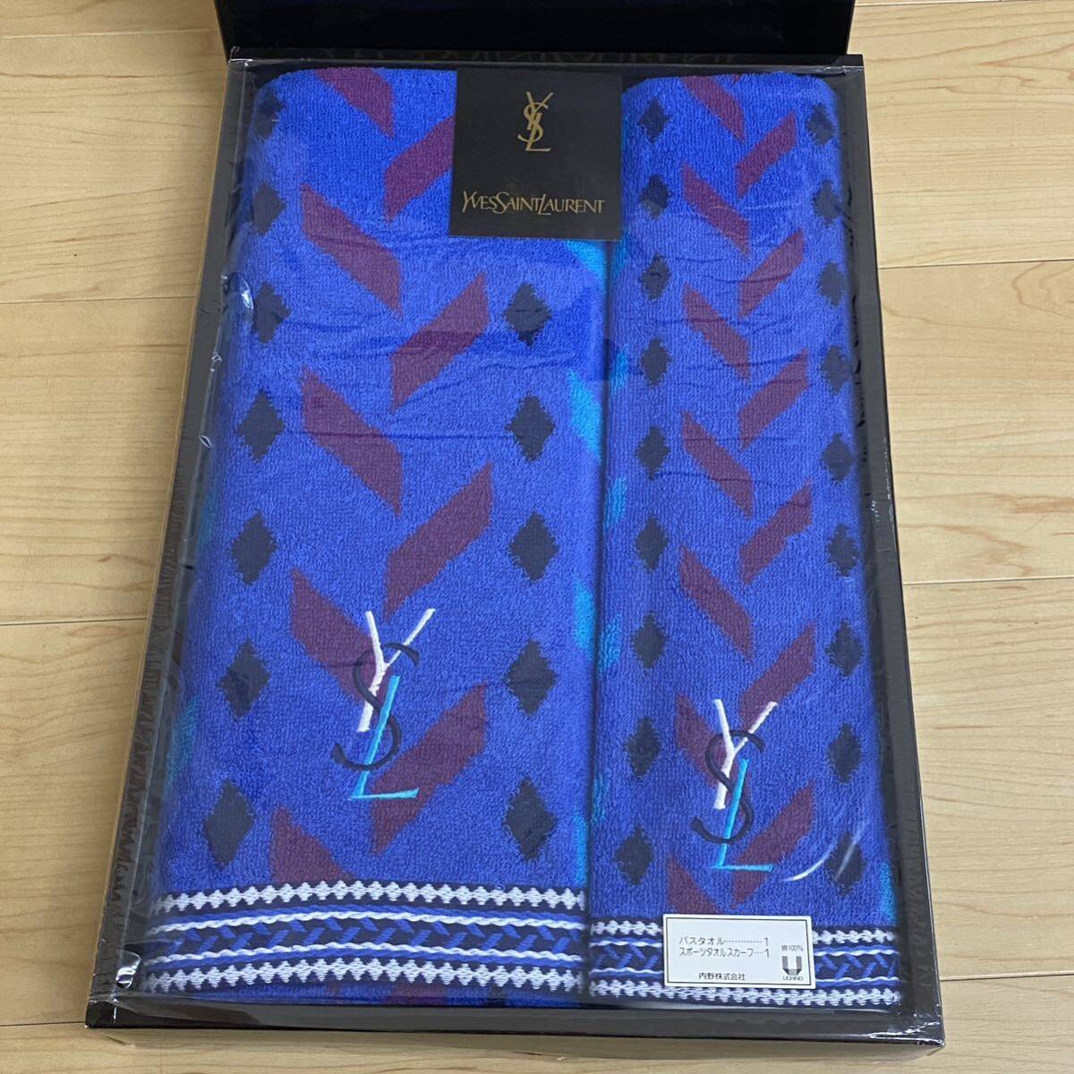 Yves Saint Laurent イヴサンローラン イブサンローラン バスタオル スポーツタオルスカーフ  ブルー ロゴ刺繍 no.161