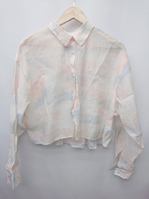 ◇ LOWRYS FARM ローリーズ ショート丈 デザイン シアー 長袖 ブラウス サイズ1 ライトベージュ マルチ レディース P