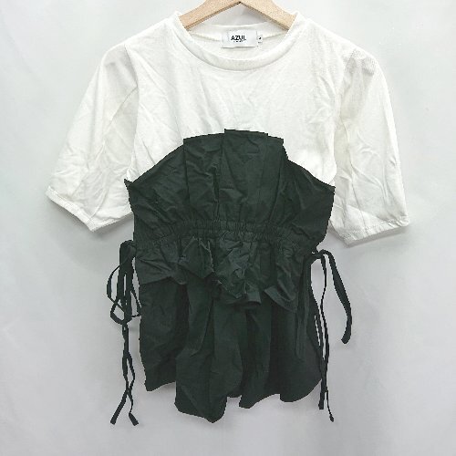 ◇ AZUL BY MOUSSY アズールバイマウジー 五分袖 チュニック サイズM ホワイト ブラック レディース E