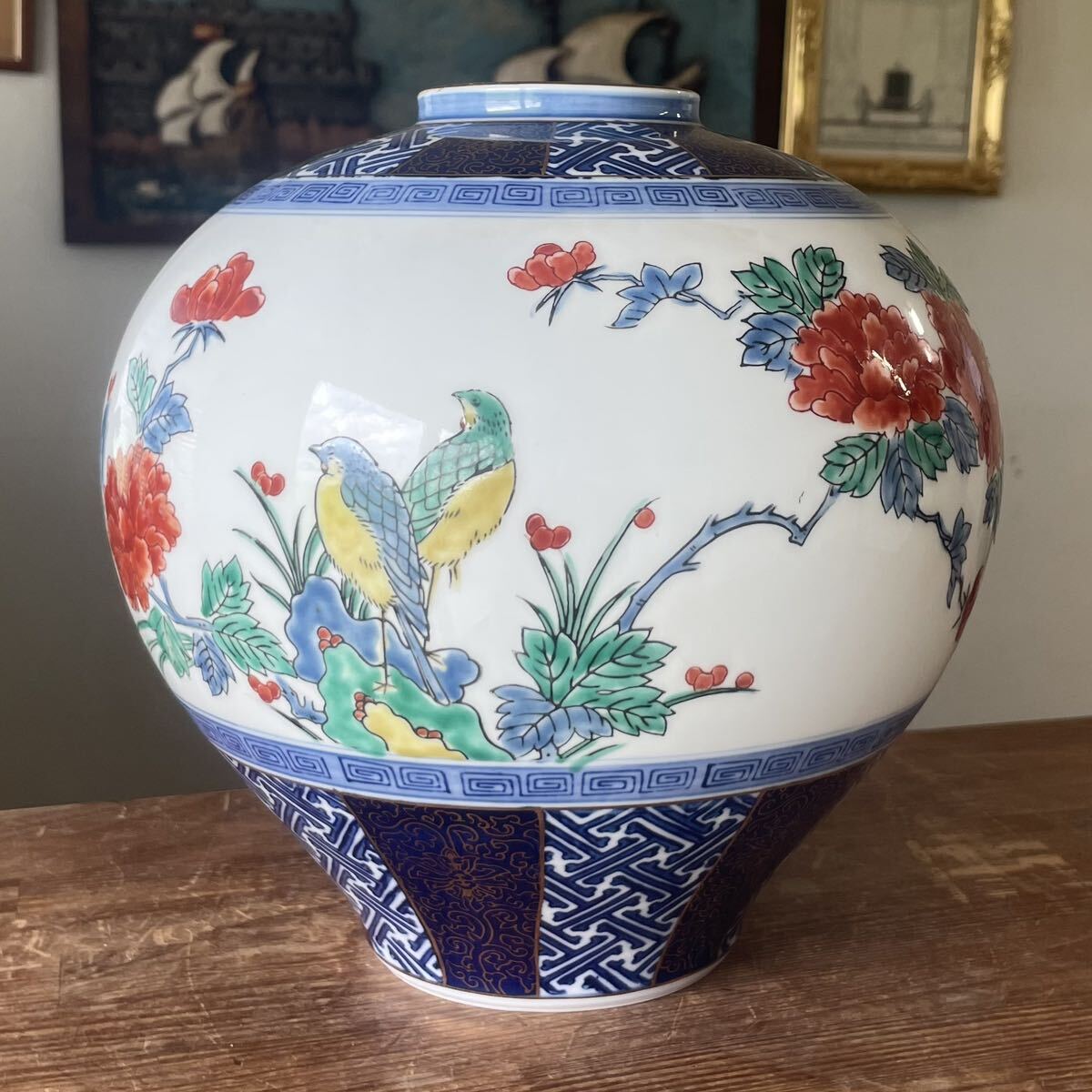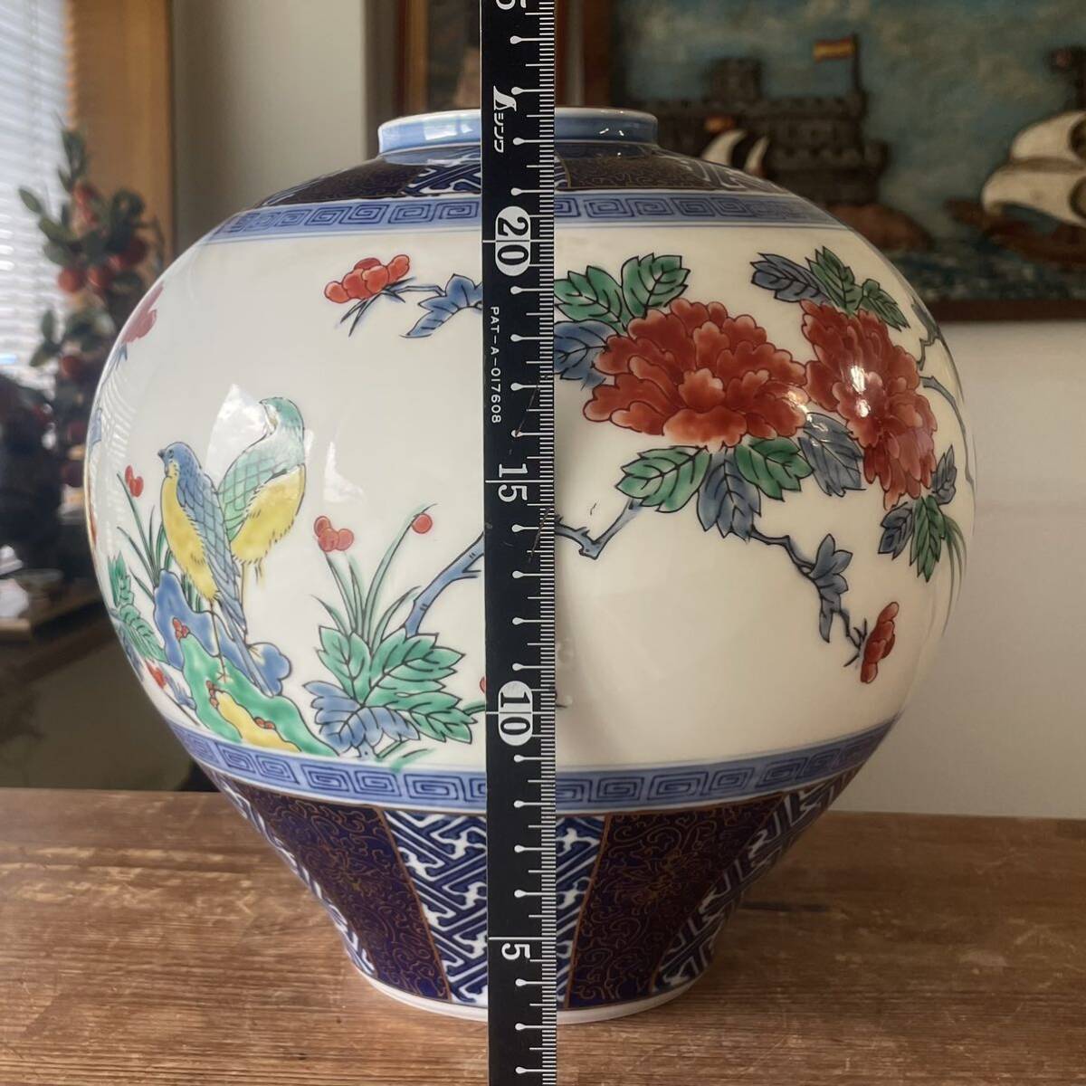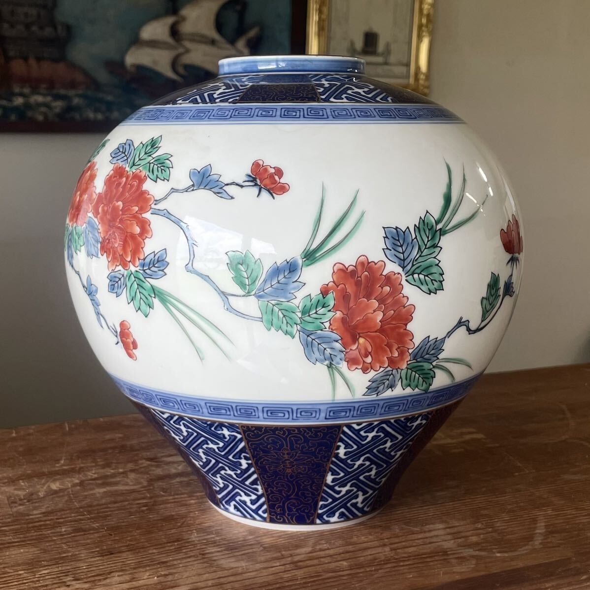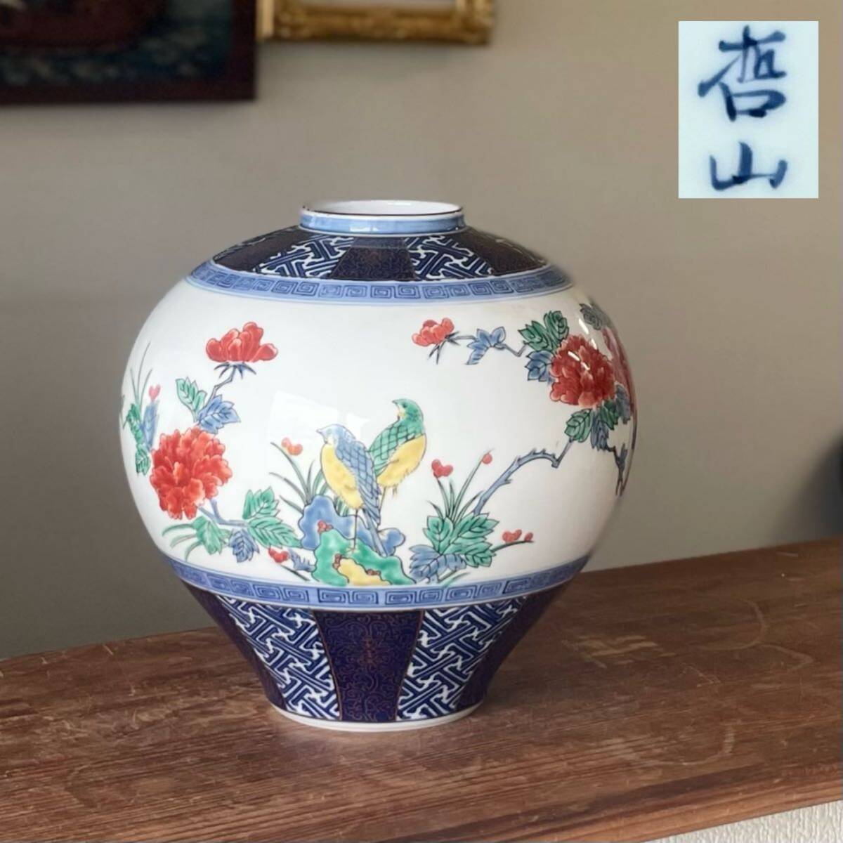 SNT519 有田焼 哲山作 花瓶 花入 花器 壺 飾壺 花壺 陶器 色絵 金彩