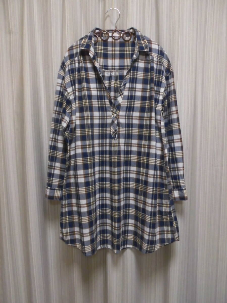 chocol raffine robe★チェック柄 肩落ち Vネック プルオーバー★袖/ロールアップ★トップス/チュニック★レディース★ネイビー×ブラウン×ホワイト★ショコラフィネローブ