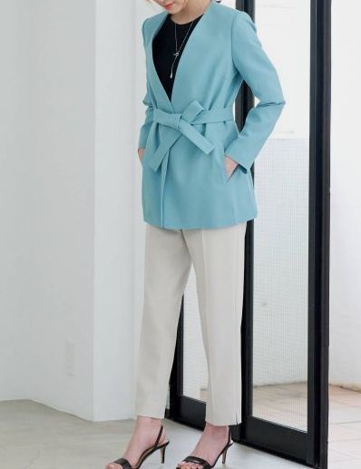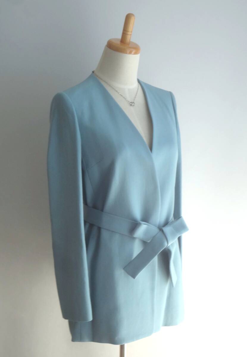 新品★アナイ ANAYI ノーカラー ジャケット ブルーグリーン 38(M)★46200円