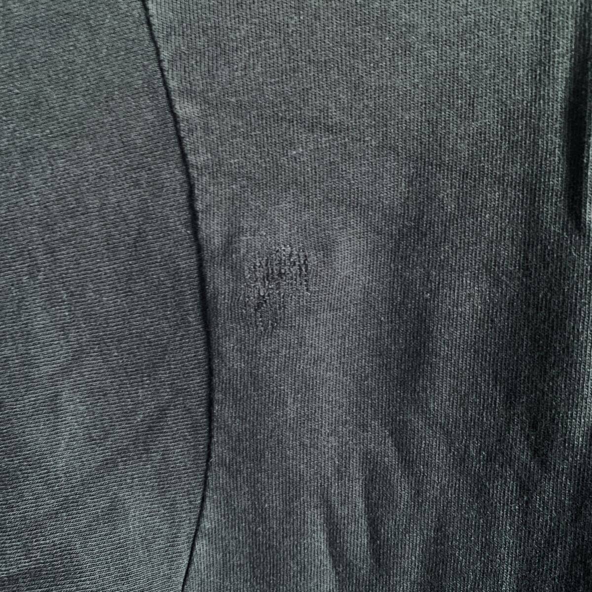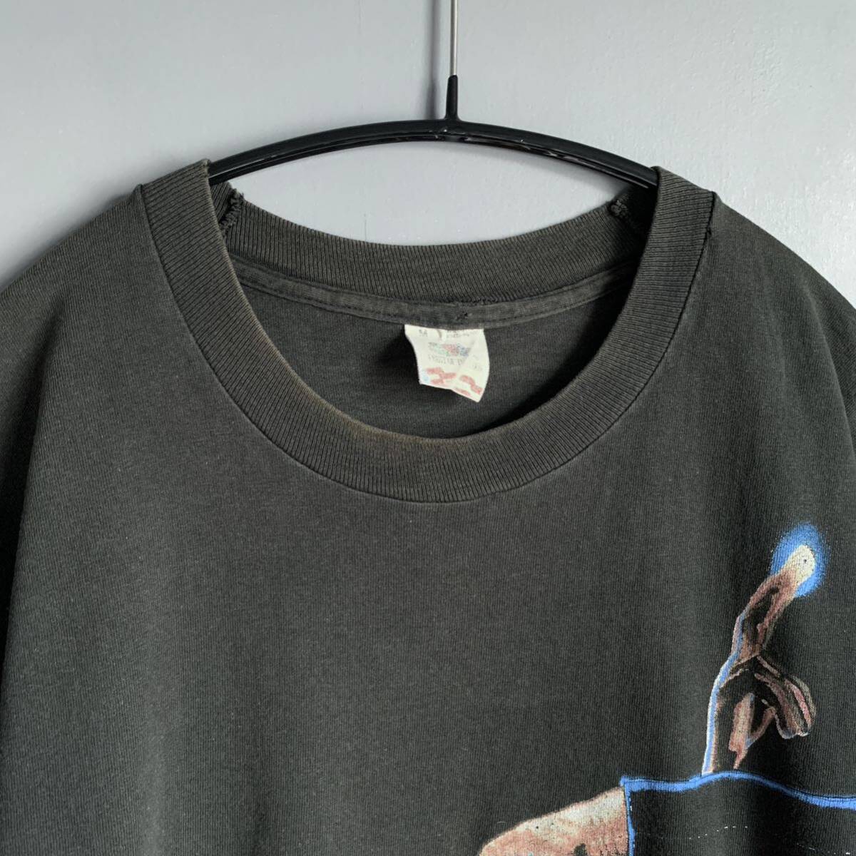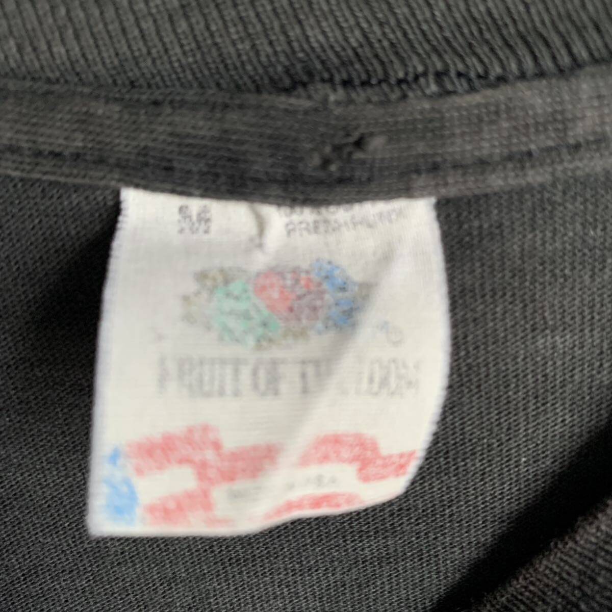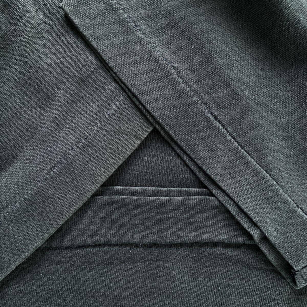 Fruit of the loom ボディの80年代のオリジナルです。フェイクの胸ポケットの後ろから覗き込んでいるデザインのレアな1枚です。ブラックからのフェード感もまさにヴィンテージと言った1枚です。袖、裾シングルステッチ。