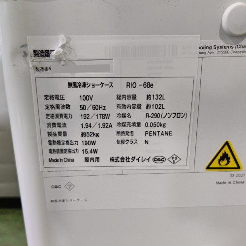 【業界最長1年保証】冷凍ショーケース ダイレイ RIO-68e 業務用 中古/送料別途見積