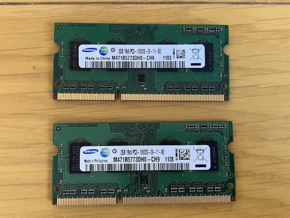中古メモリ SAMSUNG 2GB 1Rx8 PC3-10600S-09-11-B2 2枚 (1103)