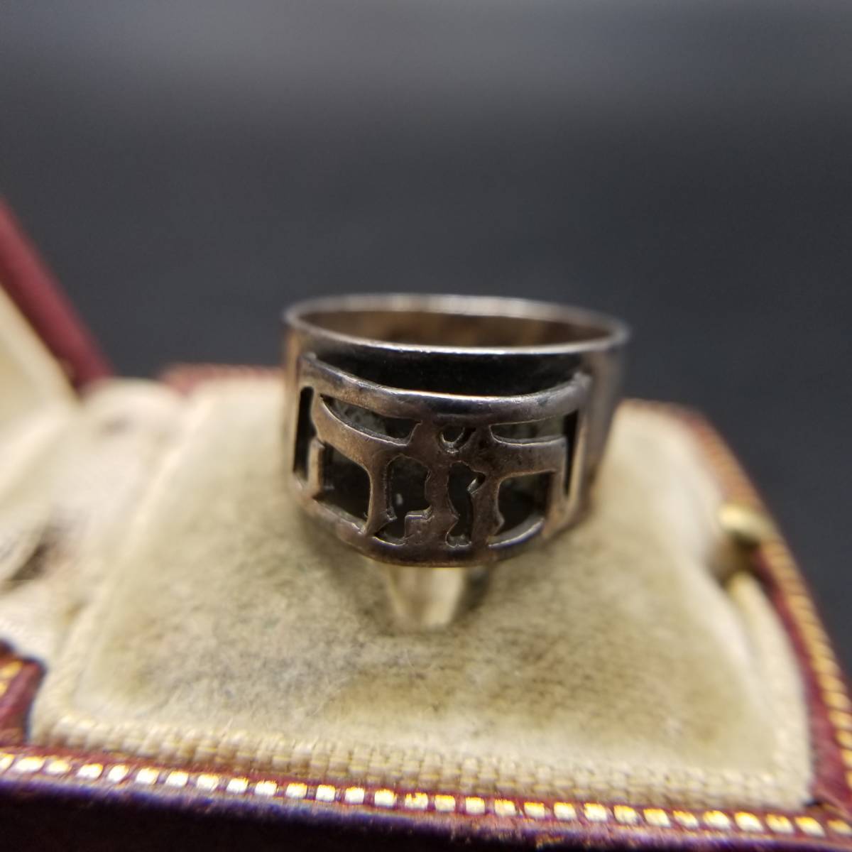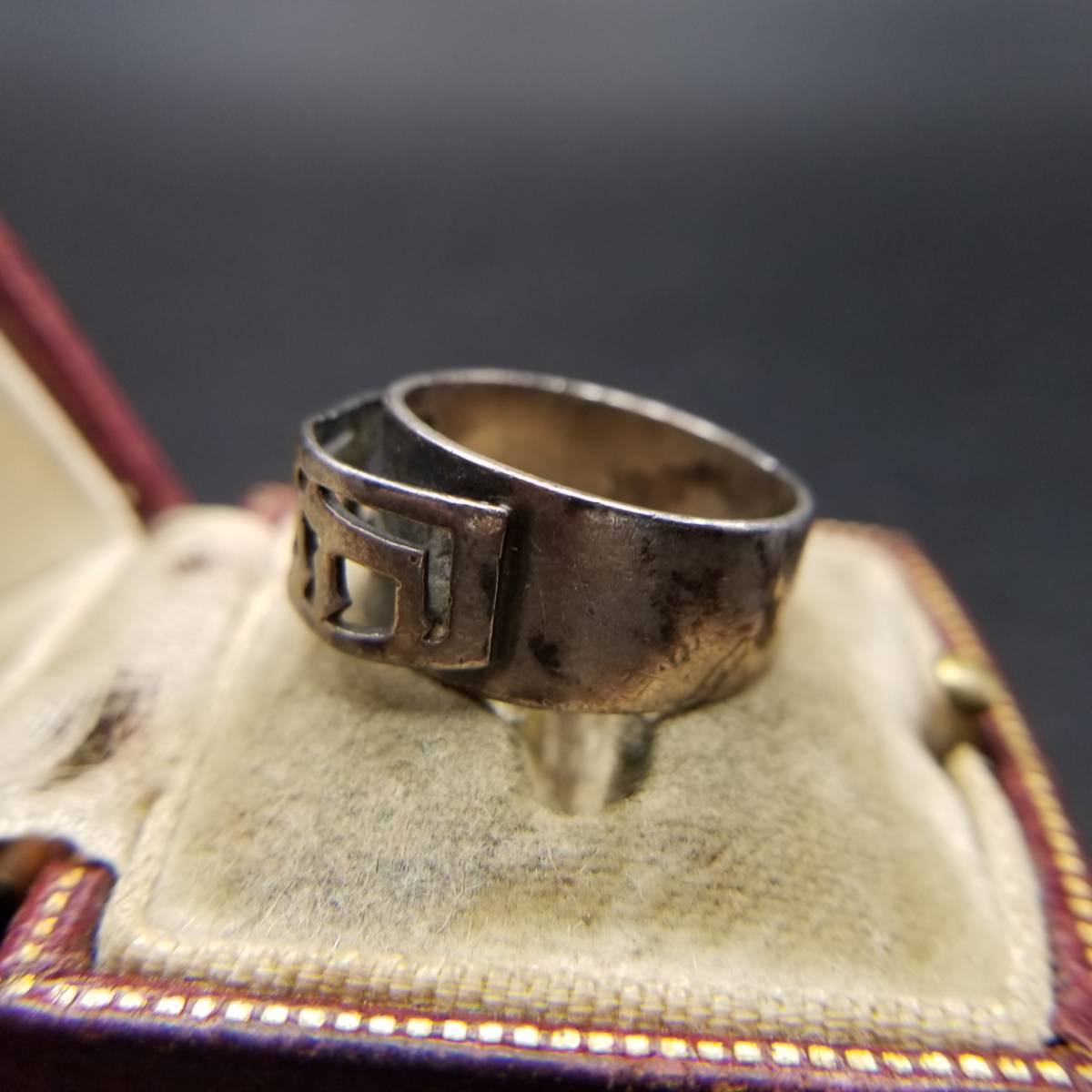 モダニスト 彫刻 透かしフェイス 925 シルバー ヴィンテージ リング 銀 指輪 4g ユニークデザイン バンドリング