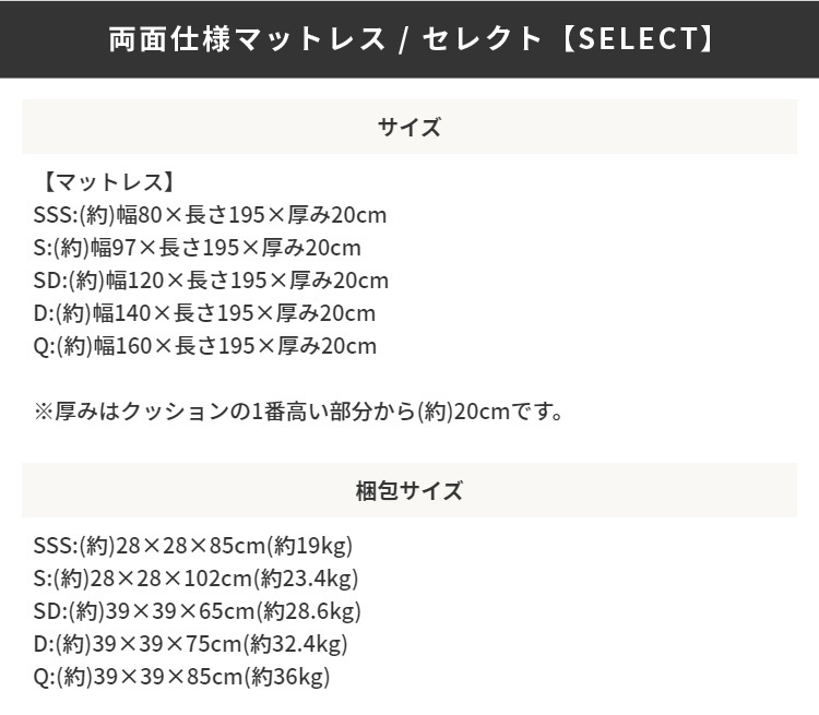生産時は各マットレス同じサイズで作成しておりますが 圧縮梱包でお届けするため伸び縮みが発生する場合がございます。