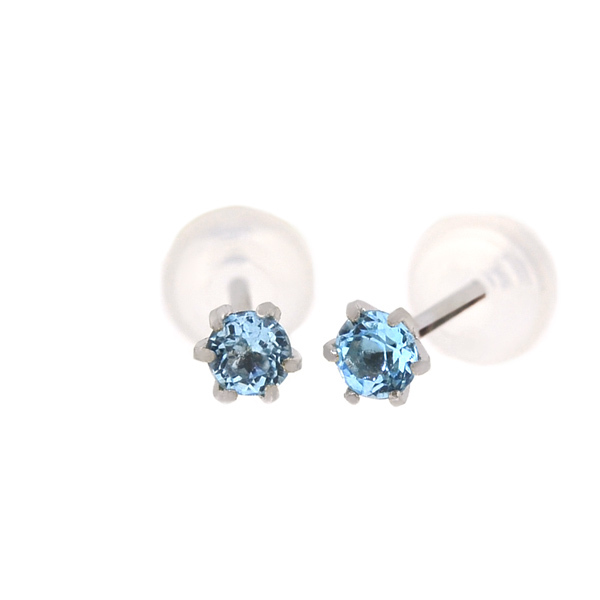 プラチナPT900ピアス6本爪2.5mmラウンドカット天然石ブルートパーズ