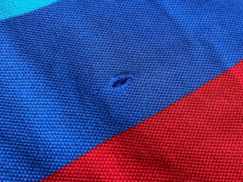 右腹部付近に小さな穴、左裾部分に穴、背中中央付近に穴、