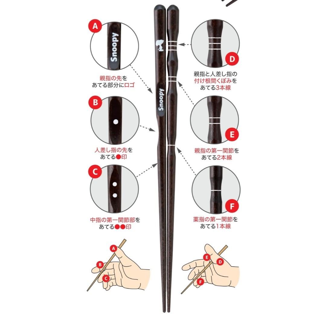 スヌーピーシルエットを自分に向けるだけで簡単上手に持てます 大人気PEANUTS/SNOOPYグッズにまたまた可愛いNEWアイテム登場 こちらはくぼみのあり特殊な構造で、無理なく美しい持ち方ができる矯正箸スヌーピーのシルエットを見えるように持つと、自然に正しく持てるような形になっています。お子様から大人の方まで対応できる3サイズを取り揃えました。ちょっと持ち方が不安だった大人も安心してもてるようになり、親子での食事の時間も楽しくなる。サイズ:約21cm(小学校高学年用)素材:天然木[Made in Japan]
