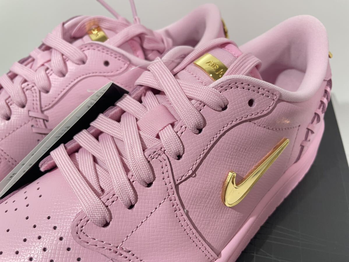 伝統あるオリジナルのシルエットに敬意を払いながら、よりクリエイティブで高級感あるスタイルへアップデート。今作では上質なレザーで包み込んだアッパー、つま先や踵には革紐の装飾でクラフト感ある印象を演出。さらにはサイドのスウッシュ、シュータンのタグ、ヒールのウィングロゴには、煌びやかな輝きを放つメタリックゴールドのプレートをセット。まるでハイブランドから発売されたかのようなワンランク上の仕上がりとなっている。カラーはピンクのワントーンで構成、ひと目見たら忘れることの出来ない仕上がりとなっている。