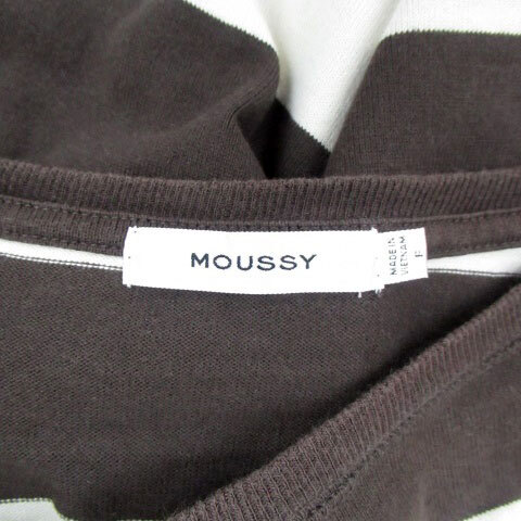 マウジー MOUSSY カットソー ラウンドネック 長袖 ショート丈 ボーダー柄 F アイボリー 茶色 ブラウン /HO12 レディース