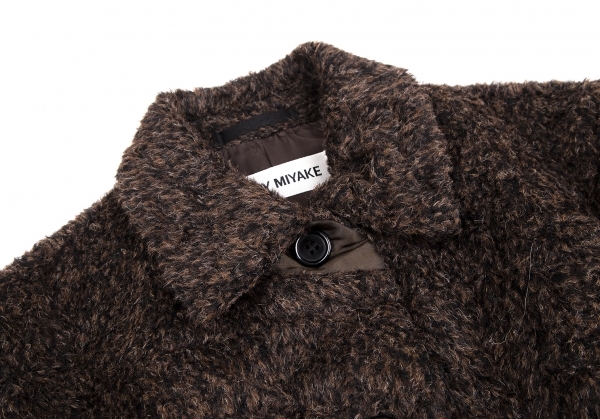 | イッセイミヤケISSEY MIYAKE 異素材スリーブ切替コート 茶黒2 |