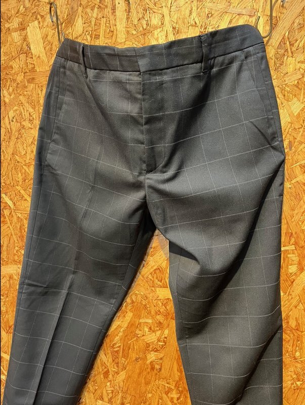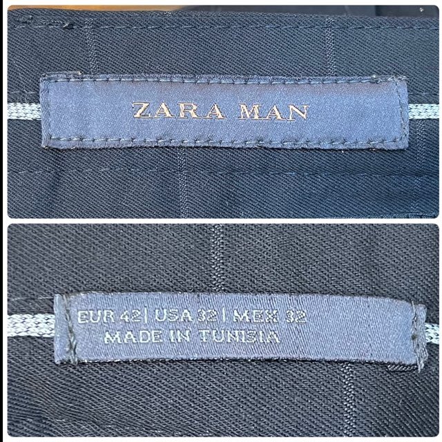 P メンズ パンツ ZARA ザラ スラックス ブラック チェック アンクル 薄手 人気 カジュアル 古着 FF142 / W32 全国一律レターパック配送