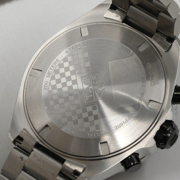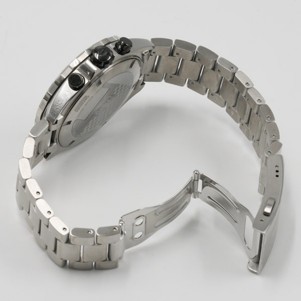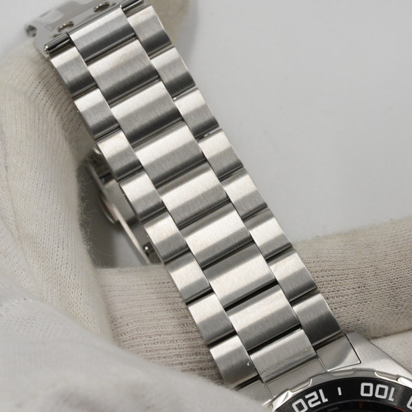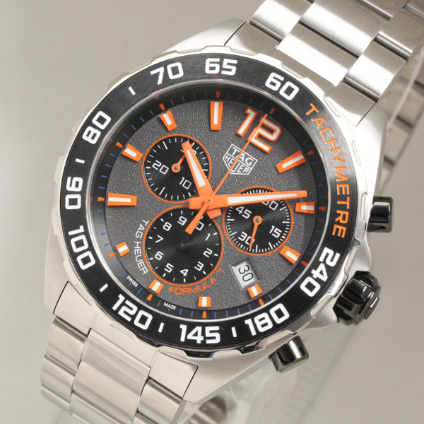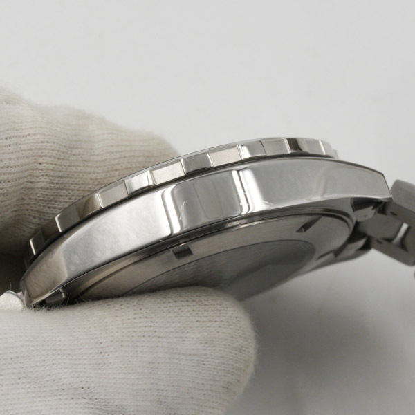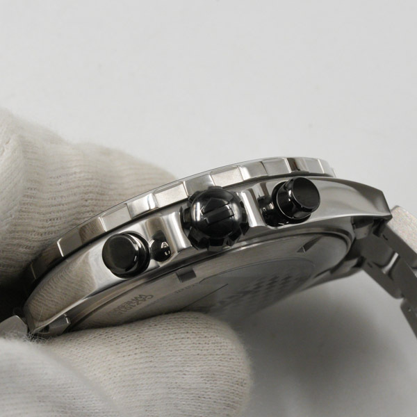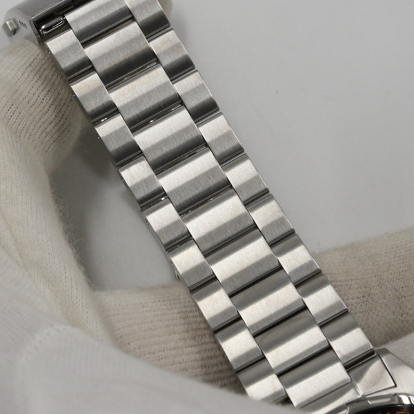 アスファルトグレーにオレンジのインデックスが特徴的なモデルです。クラスプや裏蓋の保護テープが残っていています。ケース左側面に薄傷があります。展示品と思われる極美品です。機能的には正常に動作しております。