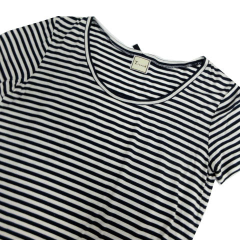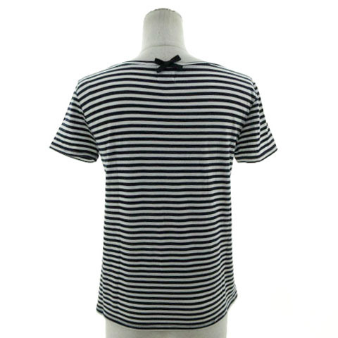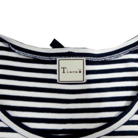 ティアラ Tiara カットソー Uネック 半袖 バックリボン 日本製 コットン混 ボーダー ネイビー 紺 ホワイト 白 レディース