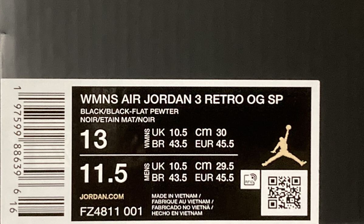 ア・マ・マニエール × ナイキ ウィメンズ エアジョーダン3 OG SP ブラック アンド フラットピューター