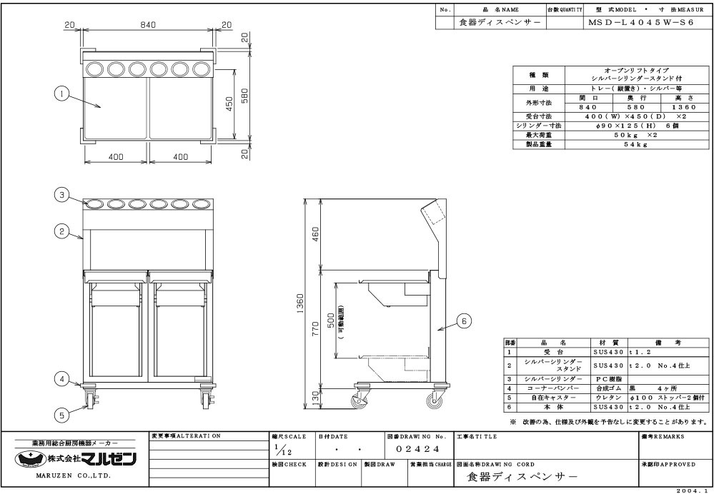 商品名:食器ディスペンサー MSD-L4045W-S6
