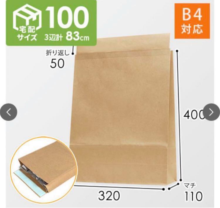 宅配袋 袋 茶封筒 100サイズ 25枚 まとめ売り B4 テープ付き マチ