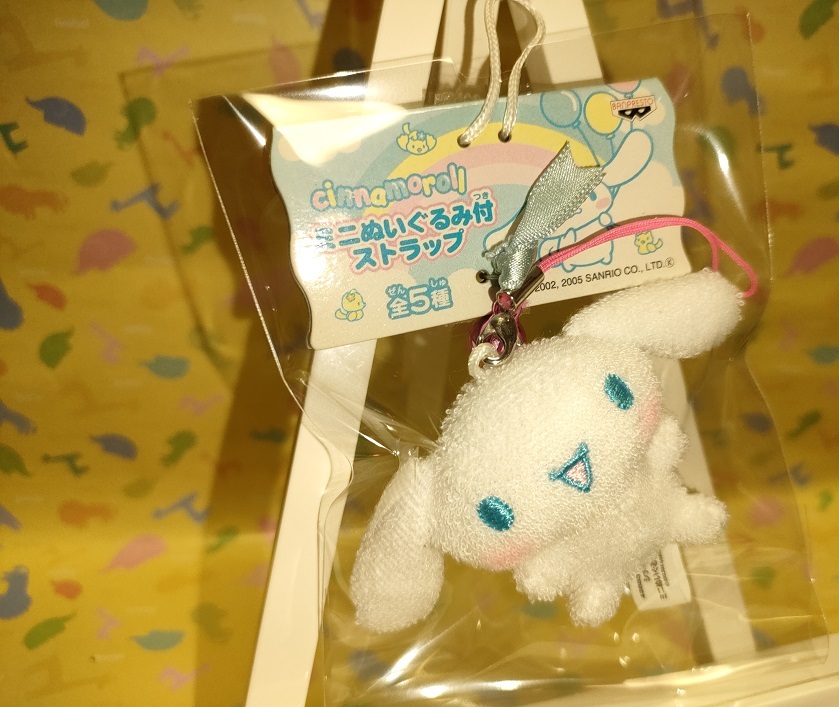激レア*非売品*2005年*バンプレスト*サンリオ*シナモロール*ミニぬいぐるみ付ストラップ*2022年*ダイカットマスコット*キーホルダ |