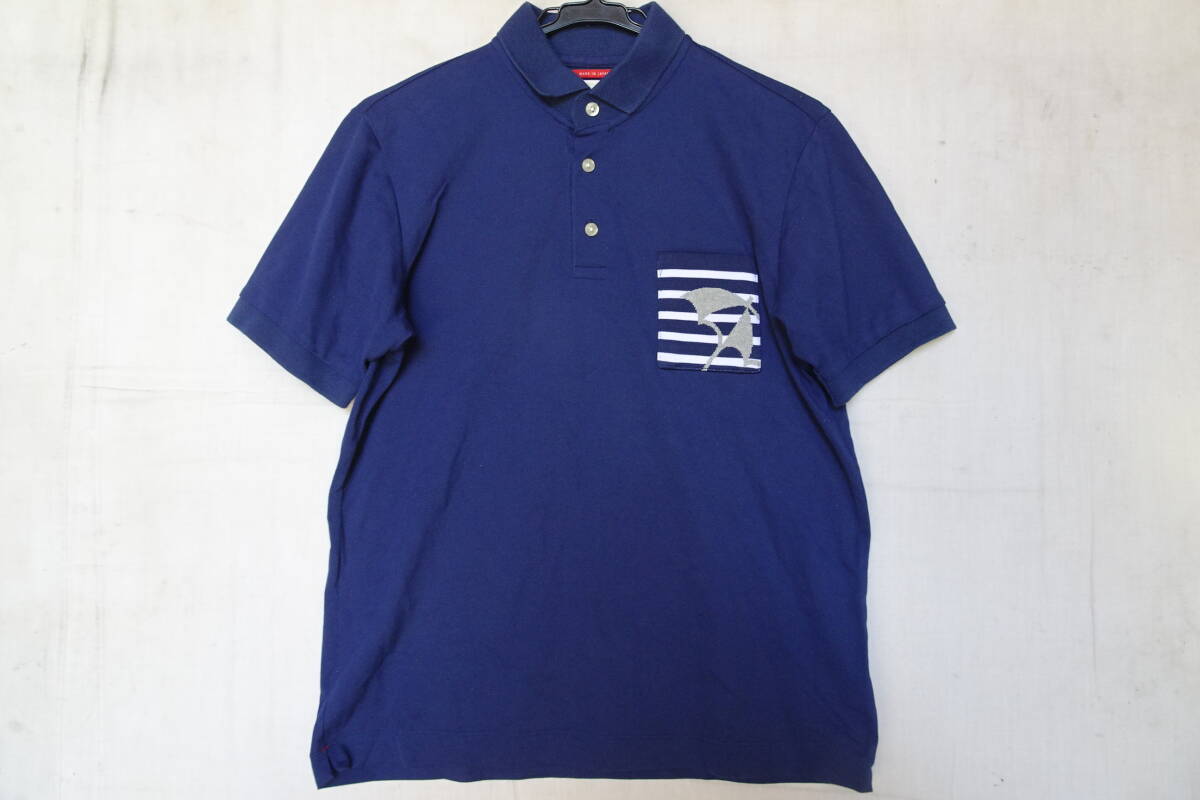 Arnold Palmer/アーノルドパーマー/半袖ポロシャツ/鹿の子素材/左胸ニット系素材ポケット/裾サイドスリット/紺/ネイビー/サイズ3(9/12R)