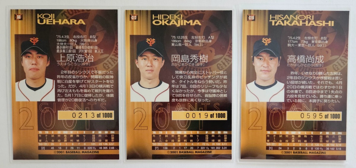 2001年BBM 巨人 1000枚パラレル3枚セット 上原浩治、岡島秀樹、高橋尚成 ジャイアンツ