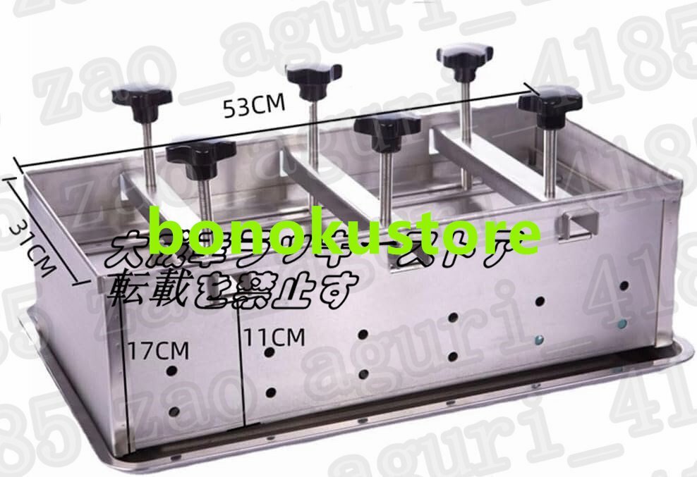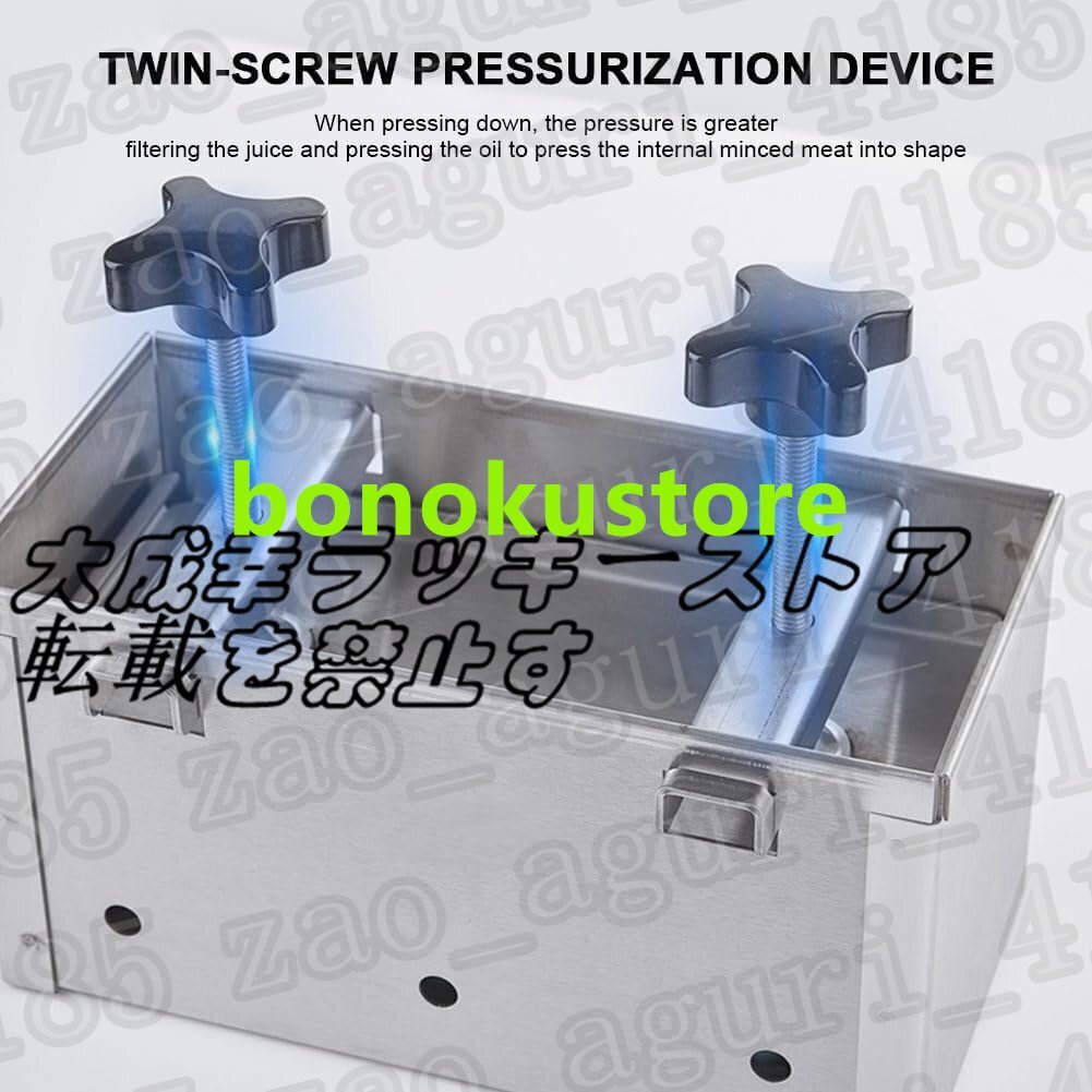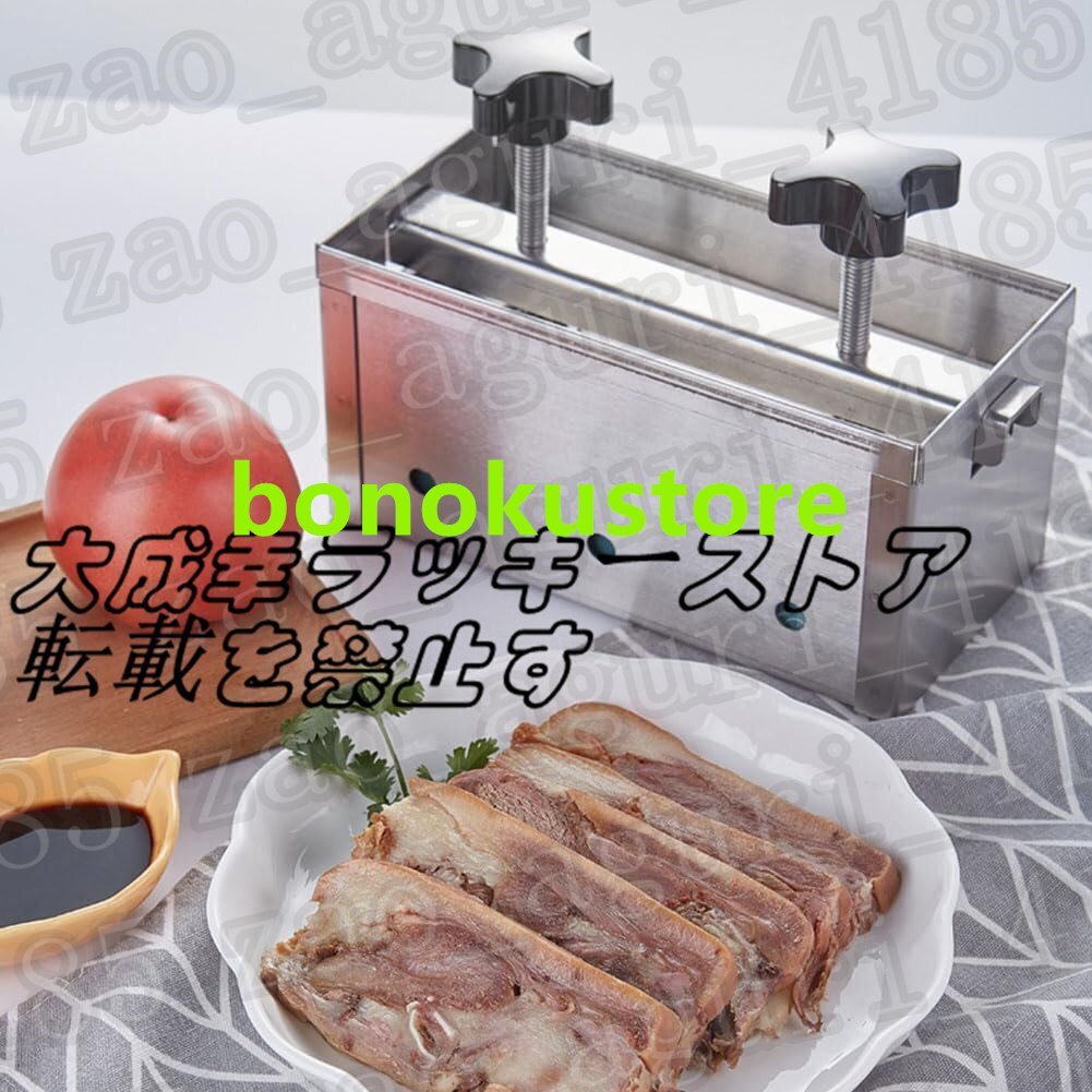 ステンレス製の肉プレス型は、お気に入りの料理にぴったりの形の肉レンガを作りたい人にとって必須のキッチンツールです。ディナーパーティーを主催する場合でも、単に自分や家族のために食事を準備する場合でも、このミートプレスはその利便性、多用途性、全体的な機能性で必ず感動するでしょう。特徴:製品名: 肉プレス金型製品正味重量: 金型 13.7KG製品サイズ: 53*31*17CM プレート 60*40CM 圧力ポート高さ 12.5CM 高さ調節可能 3.5-13cmパッケージは以下を含みます:1 * ステンレス鋼ミートプレス金型