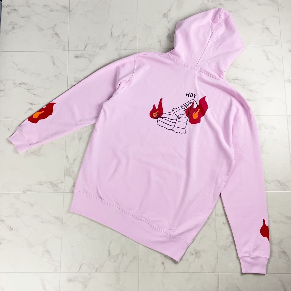 下げ札あり I&ME アイアンドミー プリントフーディープルオーバー パーカー トップス レディース ピンク サイズXL*SC1281