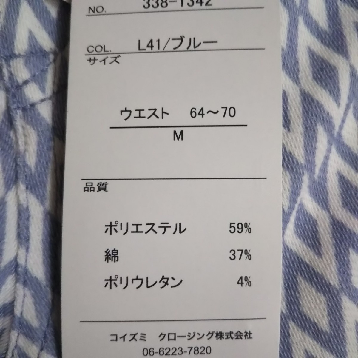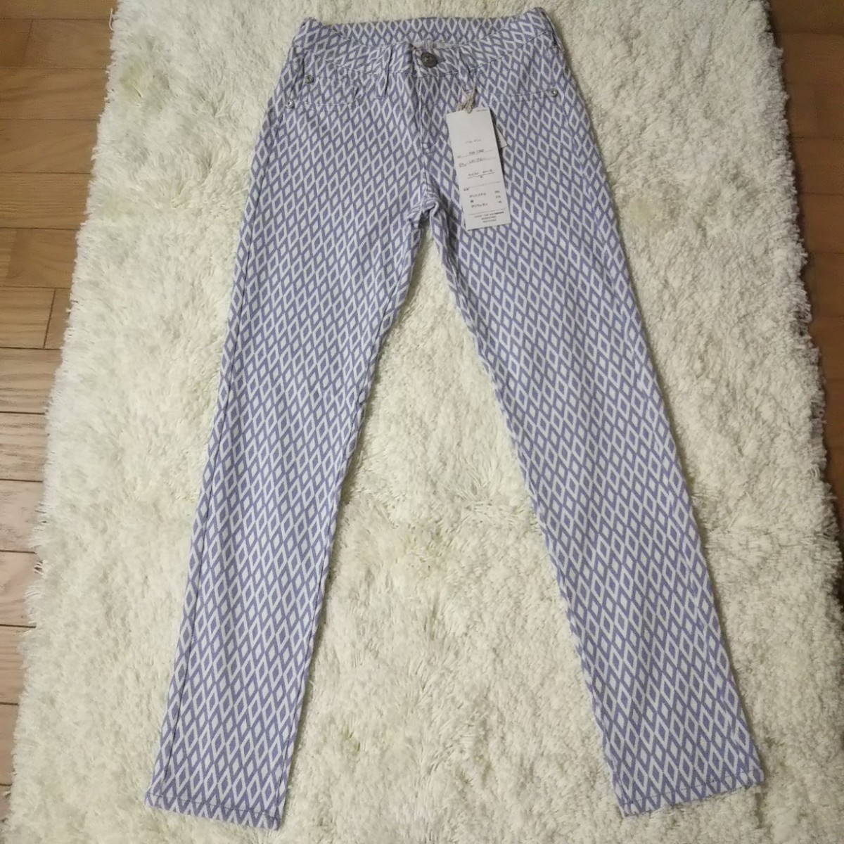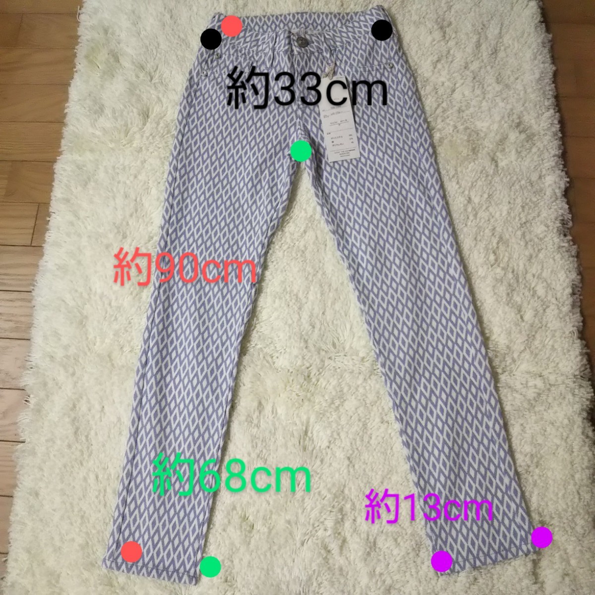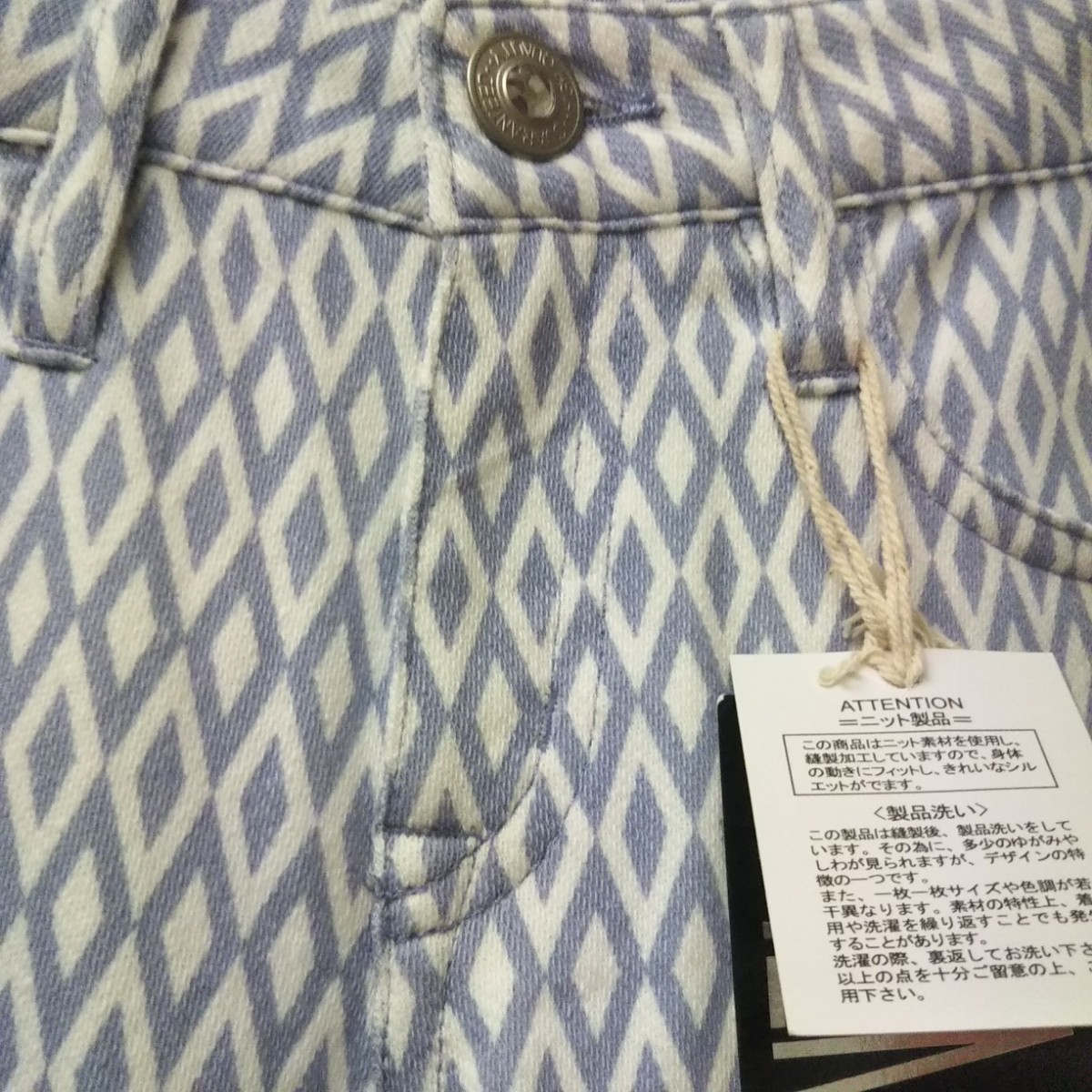 匿名/送料無料 【未使用・未試着】ダイヤ柄 パンツ アンクルパンツ Mサイズ ブルー系