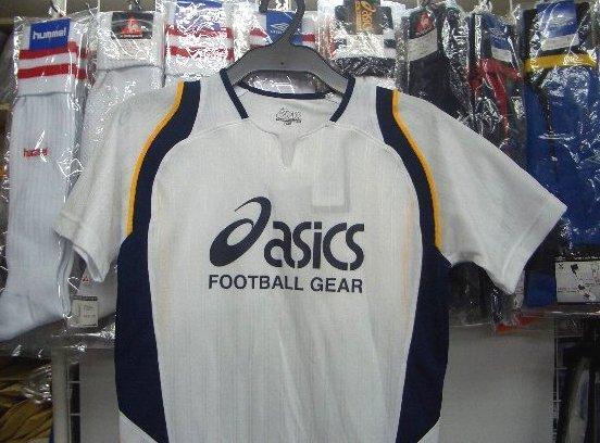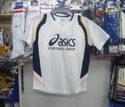 お買い得 アシックス XS6209ジュニア半袖プラシャツ 白×紺 ホワイト×ネイビー 140cm asics レトロ キッズ 子供 /